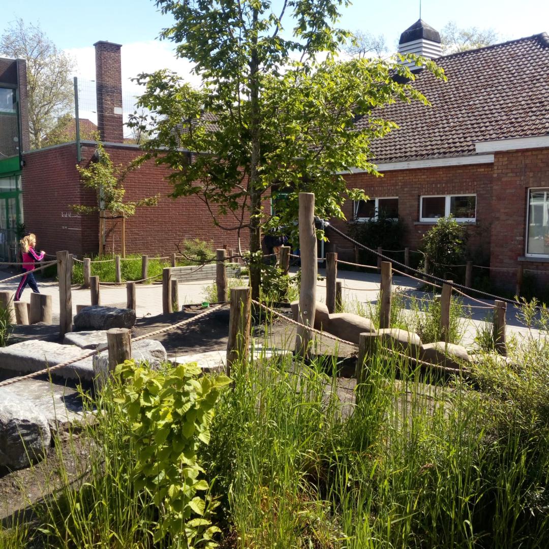 The realisation of the project is the result of an exciting interaction between children, teachers, parents, designers, engineers, education experts and authorities. By putting together a multi-disciplinary team, we managed to develop a powerful project. There was a great willingness to listen and drive for change among each of the stakeholders. Very regular consultation moments took place in which each step of the design process was taken extremely carefully. After all, it is not obvious to put the children's interests first when contractors and engineers are consulting with each other. Yet it was nice to see each party striving for perfection. The playground is also the result of a strong content trail. Helen Tovey's book on the importance of free play and Richard Louv's book 'last child in the woods' provided the direction of the vision. In addition, organisations such as Springzaad were actively involved with content on natural play. Flemish organisations such as MOS, Natuurpunt, Greenpeace, BOS+ gave their teaching programmes to prepare children and teachers for the changes. International organisations such as Learning through landscapes and the International School Ground Alliance were essential to share vision around loose parts play and stimulating examples. At the same time, our partnerships with Catholic Education Flanders, Arteveldehogeschool Ghent and the University of Antwerp were fascinating to help shape the curriculum as well. Now, as a school, we are recognised as an Eco-school through the Foundation for Environmental Education and are proud owners of the European Innovative Teaching Award which recognises our work. The importance of the Erasmus+ programme is undeniable in this and we are very grateful for it. Next to that we also had the luck to be guided by the experts of the government on water and biodiversity.