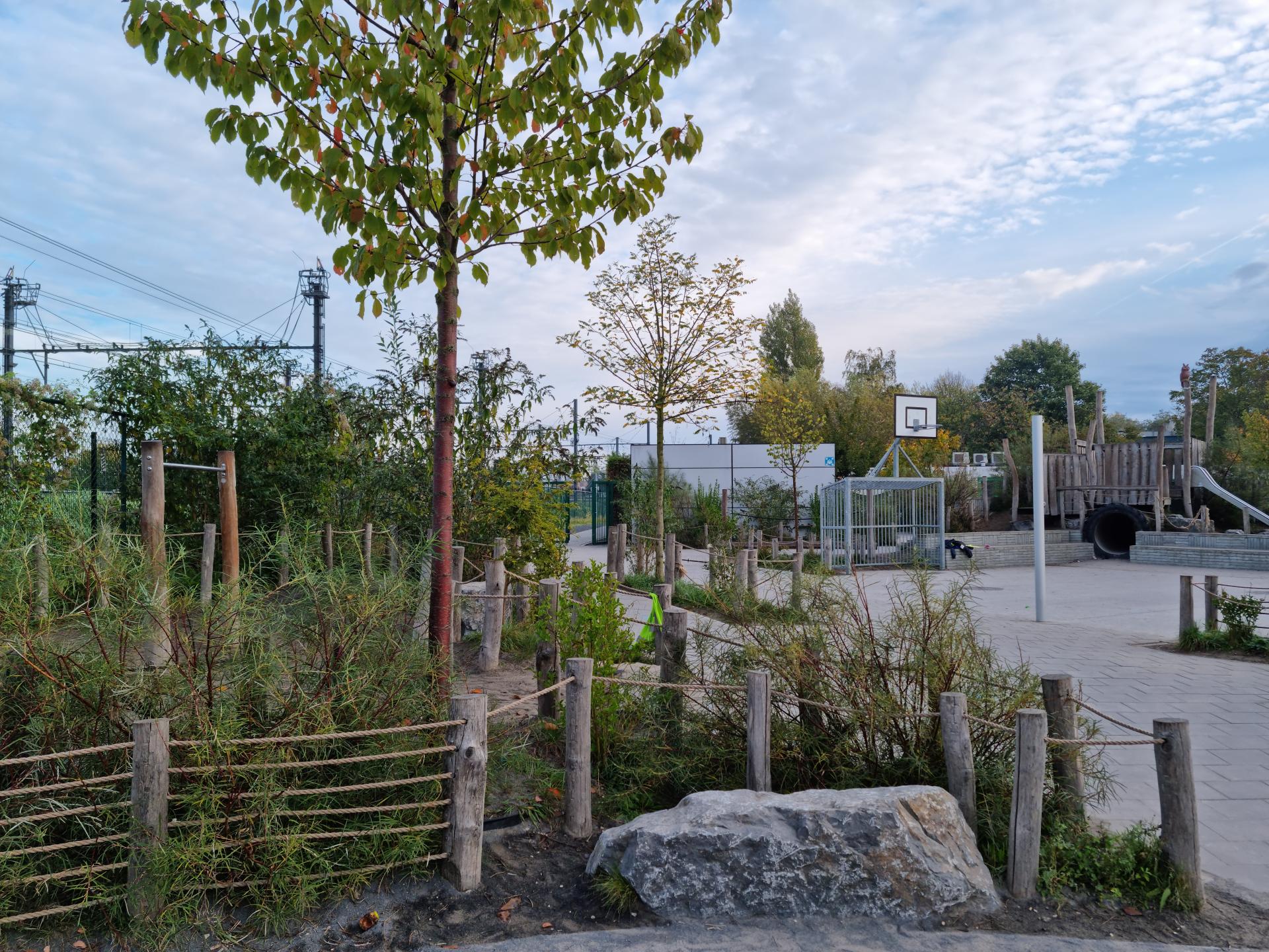 It always feels strange to label this project as "innovative" when it is a confirmation of what everyone already knows. We urgently need to commit to nature-rich cities and towns. For Flanders, which is a particularly densely populated region, with complex spatial planning, this is even more true. We struggle with a dramatic loss of biodiversity, we struggle with drought and flooding and sinking groundwater levels, and we cannot get air pollution under control in our cities. We see no way out of our clogged mobility bottlenecks and keep putting band-aids on the wound. Nor are we showing our youth the forceful solutions needed to bring about change. This project, then, is a pearl in the ocean. We have managed to do a total makeover of a space that is pretty much always seen at school as the residual space where a new playground equipment is occasionally put. So we think the innovative thing is in the fact that we realised this and turned so many noses in the right direction while also finding the necessary funds to pay for it. An ingenious water management system was installed under the playground, cleverly answering to water drainage, collection and reuse. Above ground, large areas were softened and biodiversified. Above ground, a stimulating play and learning landscape was then also built, offering daily fun for 500 children. The great thing is that this story is not a top-down story but definitely a bottom-up one, in which the children were put centre stage time and tim again and in which we succeeded in linking infrastructure to curriculum so that the teaching team is also committed to working in this space. The contrast with other similar projects is the scale of the project. There were no small interventions in small areas. Work was done across the board on content, form, communication and education. To this day, this is our challenge and we succeed wonderfully in inspiring our children, teachers, other organisations and international teams.