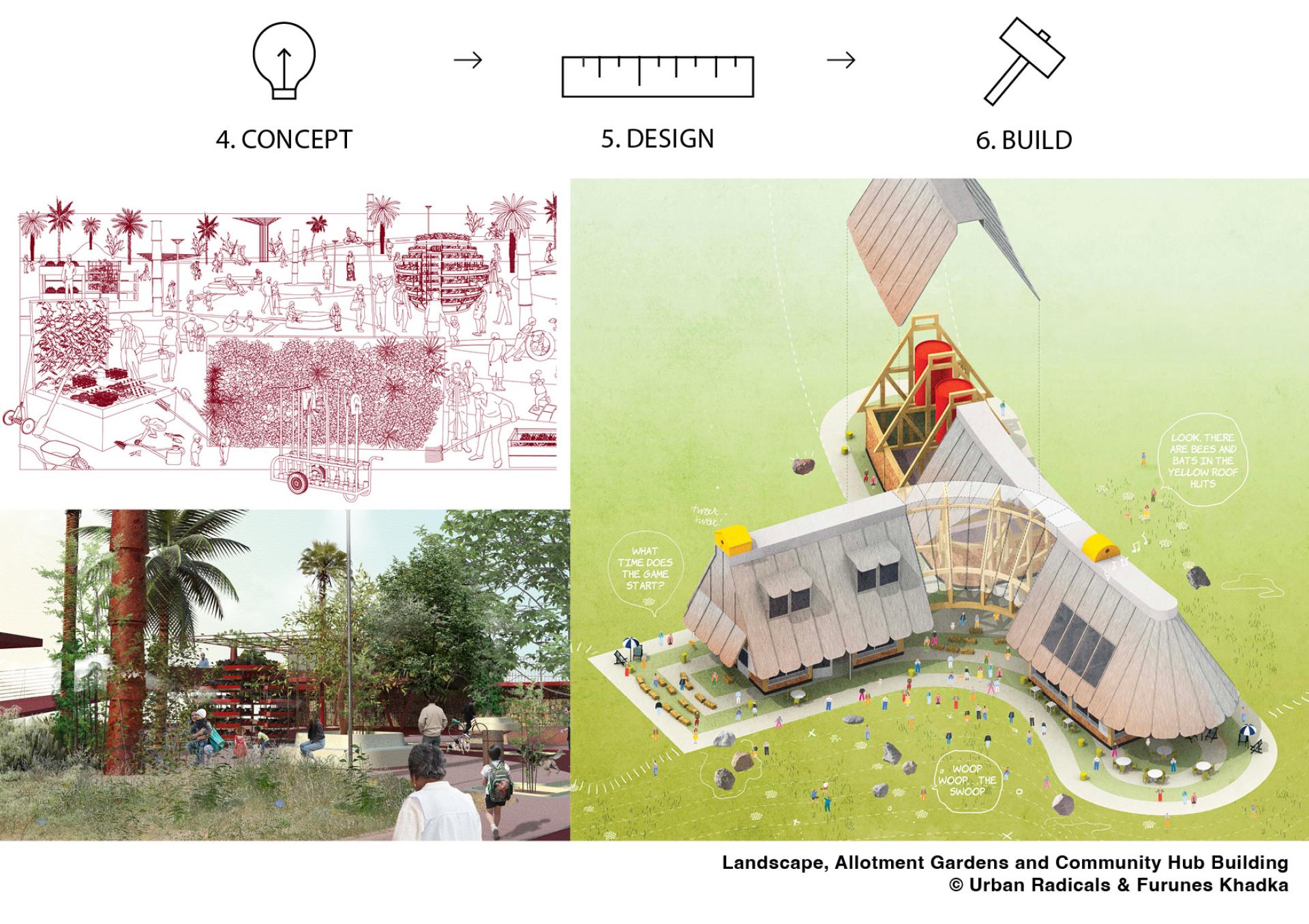 The initiative serves as a case study for new forms of sustainable urban development. It explores a circular mode of construction and upkeep that is informed by creative re-use of materials, local resources and economies A primary focus on locally reclaimed materials and upcycled aggregates, driven by ongoing practice-based research of the team (Urban Radicals, Eriksson Furunes + Khadka), will contribute towards significantly limiting the embodied carbon footprint of the project, while the revival of the disused park through landscaping and bio-divers
