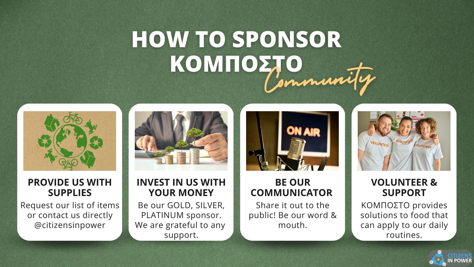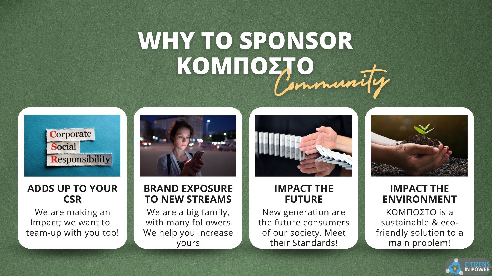 'KOMPOSTO's development plan includes 3 main pillars. The 1st is to create awareness through education (from kindergarten to high school). This can be implemented by visiting the local schools & providing information and awareness of what composting is and how to put theory into practice. The 2nd, will be to engage schools through an engagement motivational letter (an agreement with terms and conditions, with responsibilities, awards, benefits, and other useful details) that teams in schools commit to receive further training & establish a composting site to run in their community. Each school will use a platform provided by C.I.P to record results online. At the end of the year, as our 3rd pillar, participant schools scored higher than 70% will be called to develop a presentation and they will compete with other schools representing categories (primary, secondary etc). A committee of experts (jury's team), will provide feedback and vote for the winners. Prizes will be financial support to the school to develop & implement further ideas related to sustainability. Site visits, trips & further training are included in the award’s scheme. During this phase, learning games, workshops, how-to videos, infographics, other demonstrations, and hands-on training courses will be provided to each school. All teams will go through evaluation, for their quality using different quantitive indicators (i.e. evaluations, actual measurable results). At the end of the year, an annual report will be published with findings, results, knowledge gained, fun facts, etc. Throughout the running year, promotional material will be used to support the initiative's campaign such as social media, press, festival day dedicated to sust. solutions, and sust. utility products (seed pencils, straws, water bottles, hats from recycled cloths). Our partnerships with Danish Youth Team, Copenhagen Business School & Greece’s Fabric Republic & SustChem Consulting SA are joining ‘Komposto’ in their countries.