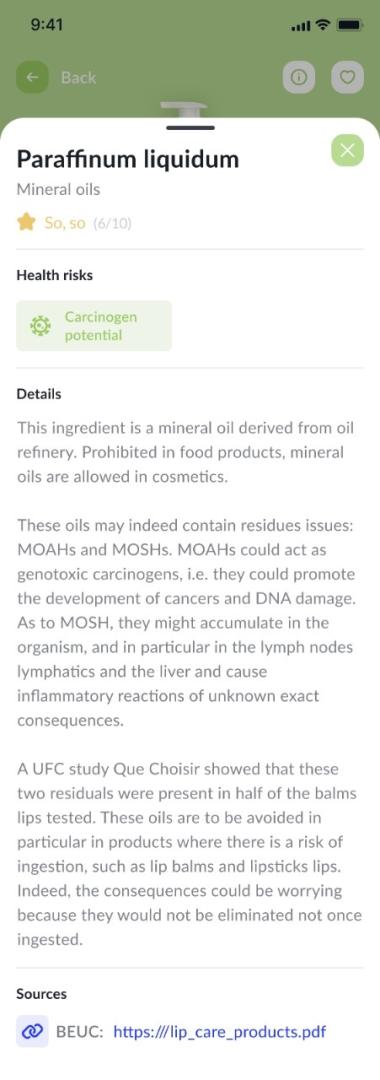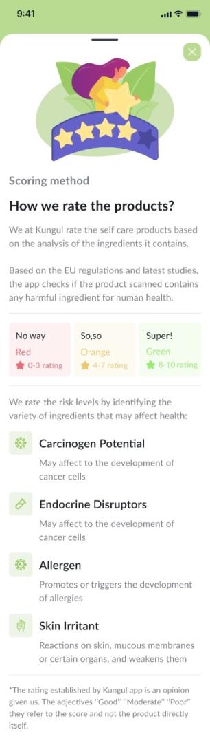 With KUNGUL app, the consumer can quickly get an evaluation of the self-care products, based on its ingredients analyse (EU regulation).