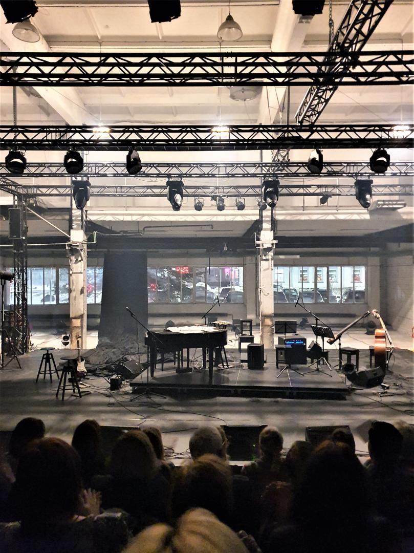 The project is underpinned by a commitment to providing a cultural experience for both artists and audiences. Careful design and resourceful use of existing assets has created an intimate and immersive theatre venue. The theatre hall and ancillary spaces have been designed to ensure that each facet contributes to a rich and immersive experience for all participants. The presence of windows framing view of the town's main street at night provides a unique backdrop.
