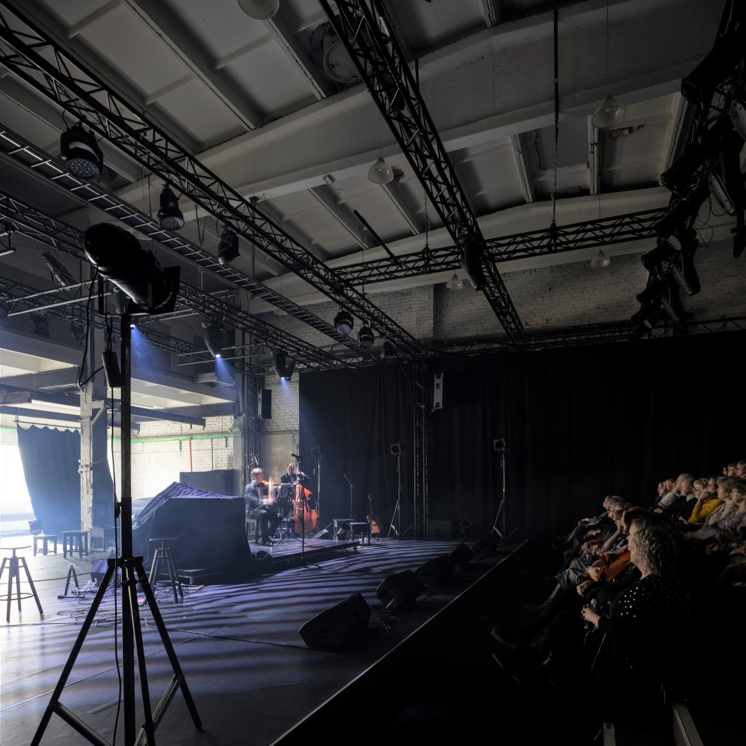 Valmiera's former boiler house is built in the 1970s and located in the very centre of Valmiera. However, with reconstruction works of the theatre building in Valmiera currently suspended and likely to take a long time to complete, the theatre collective was forced to find a temporary home to enable it to continue delivering high-quality drama to northern Latvia. Within two months, with funding from the Ministry of Culture and the support of the municipality, the Kurtuve project was drawn up and the reconstruction carried out, creating a theatre hall and auxiliary rooms, while preserving the industrial character of the building.