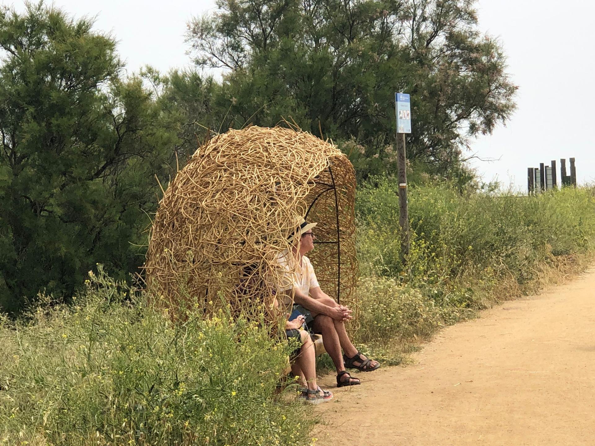 The project follows the philosophy of Universal Design, which is realized for everybody regardless of people abilities or disabilities. The aim is to encourage the improvement of our community values and promote a more respectful relationship with nature, through an innovative and creative proposal that combines nature, art and communication. Inspired by this wild landscape, which very well hides a domestication, shaked by the wind that combs a flexible and ethereal vegetation that dances and splashes, eroded by the sun and the sea breeze that rounds the stones and the sea wood. A landscape that hosts a tiny fauna with a more timid presence than that of the birds that visit and nest in it, Domestic-Wild has designed these 12 elements that now contribute to making the Itinerary of the Pletera more accessible. These pieces are handcrafted by Domestic-Wild with local solid oak and cedar wood, combined with wicker plant structures handcrafted by Tramats.cat a couple of artisans based in Torroella de Montgrí.