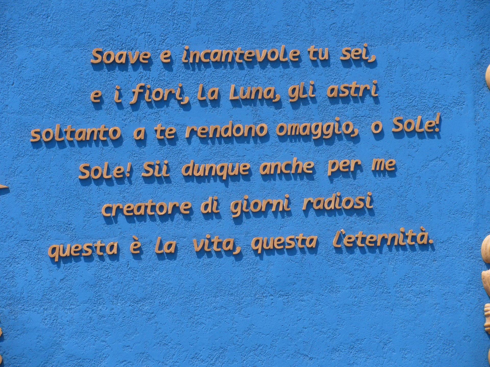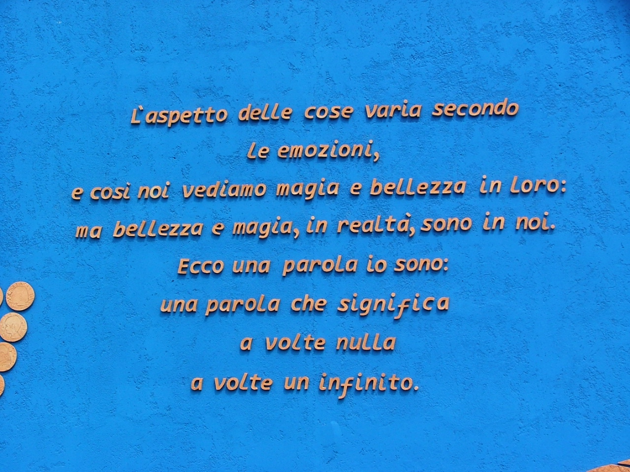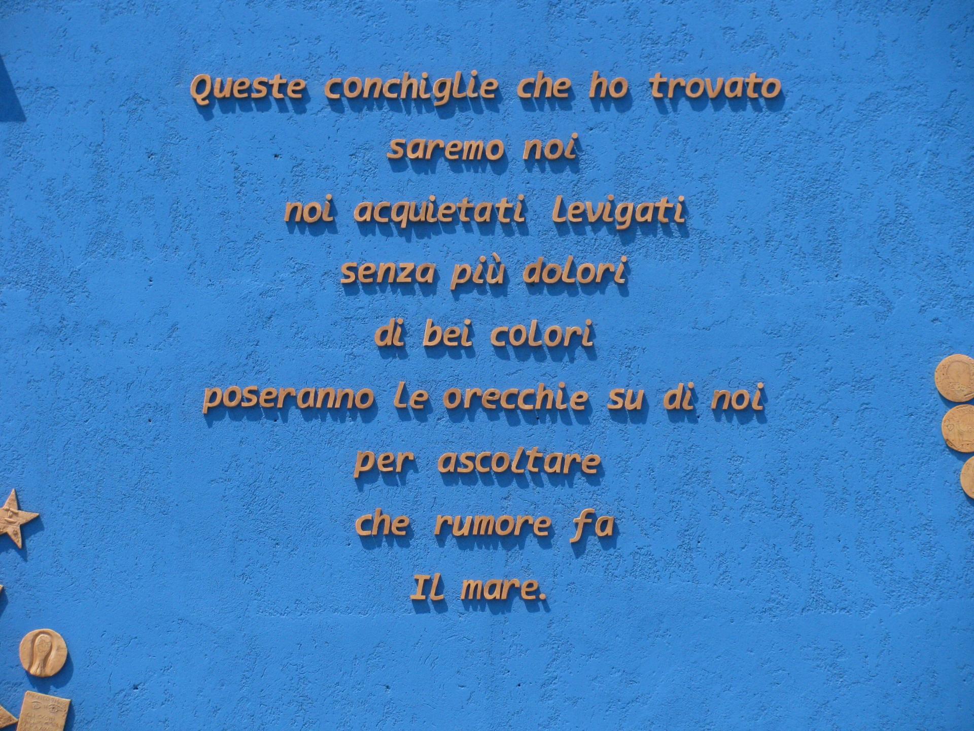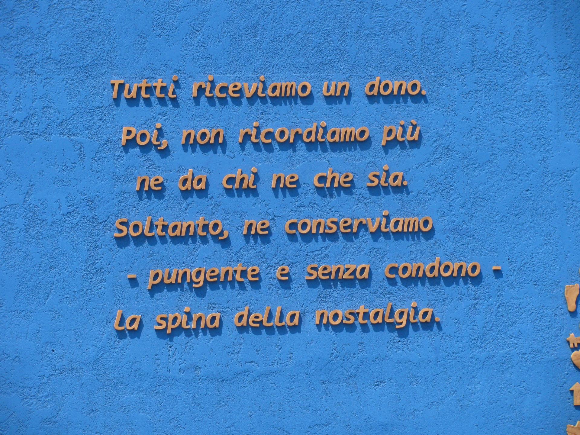 The part of poetries in between the above main installations belongs to Dante Alighieri, Oscar Wilde, Emily Dickinson, Giacomo Leopardi, Giorgio Caproni, Johann W. Goethe, Kamlil Gibran, Maria Attanasio, Mario Luzi, Nelo Risi, Vivian La Marque and Radindranath Tagore.