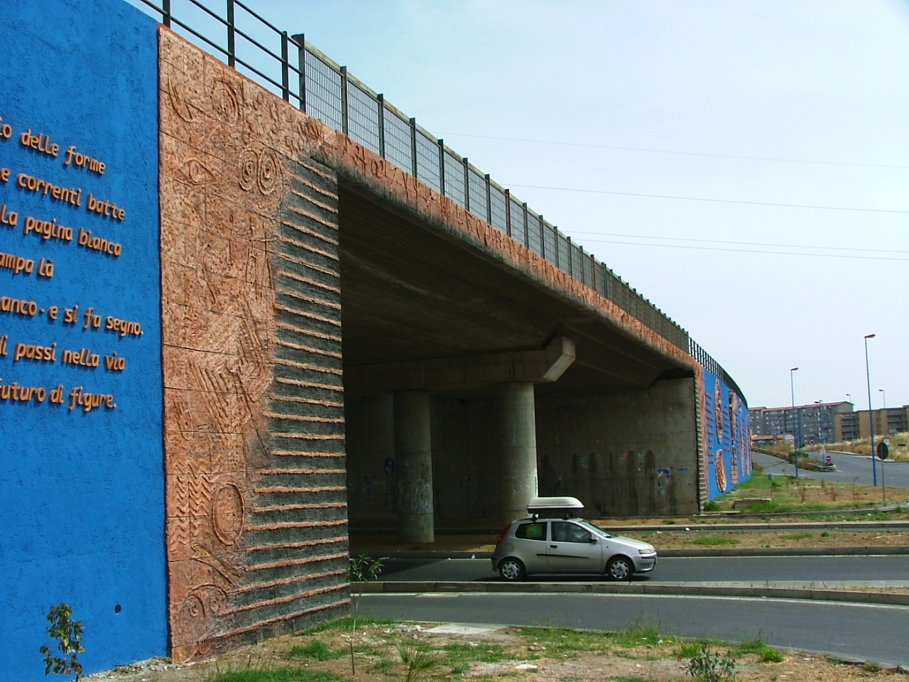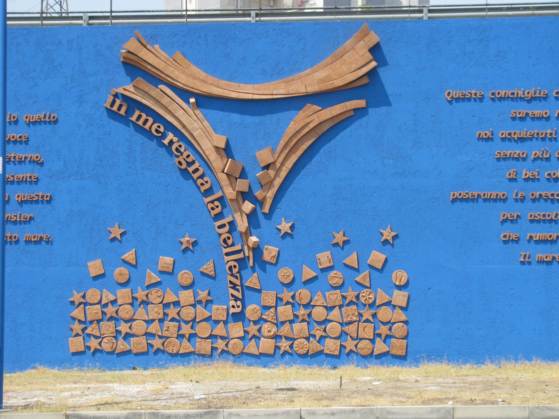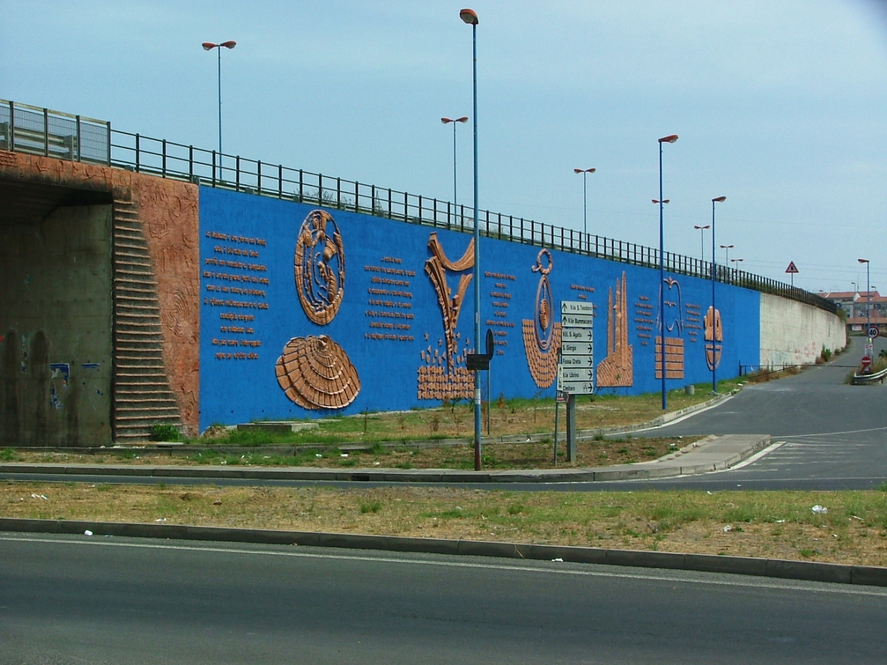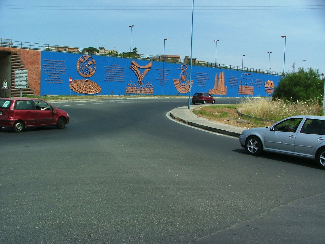Motorway Palermo-Catania, junction Librino. This was the worst and dangerous marginal area in Sicily in terms of crimes, drugs and mafia. At the biggest roundabout, along 500 mt of concrete motorway's passage wall, Master Antonio Presti built in 2009 “The Beauty's Gate” (translation from the original Italian version the “Porta della Bellezza”), which is the biggest land art installation composed by 9000 artefacts/elements terracotta made in a school laboratory by the cooperative contribution of artists, art's student from college, 2000 children and their mums. The“Porta della Bellezza”contains 13 big main art installation and 13 poetries in between. This installation is applied on a cobalt blue wall and the main theme of it is “The Big Mather”. The terra cotta, nature-based material, identifies the circularity and sustainability of this project. So far, neither vandalism or disparaging acts have been perpetrated there. In Librino, periphery and matriarchal land portion in Northern East Sicily with 75000 habitants, women are holding the heavy weight of their family. Since 1990’s, people in Librino have been victim of long-suffering, violence and poverty on a both consciousness and economic level, especially female and kids. The Vision of Antonio Presti is to bring back to women their sacral dimension on a sort of symbolic and metaphoric huge altar, created by the cooperative and intra-generational engagement and exchange of artists, young students and mums. Now, in Librino, new values are raising such as dignity, honesty, vision and kindness. Throughout the love to realize a little piece of terra cotta, each person will respect the value and the beauty of a mum, therefore, respect into the Community and the same for further coming generation. From Antonio Presti's Gift to Librino to a social identity, from a"no-place"with"no-identity" to a home. It’s a symbolic transformation translated into reality. Art is either a therapy to heal a wound and a tool to became free.