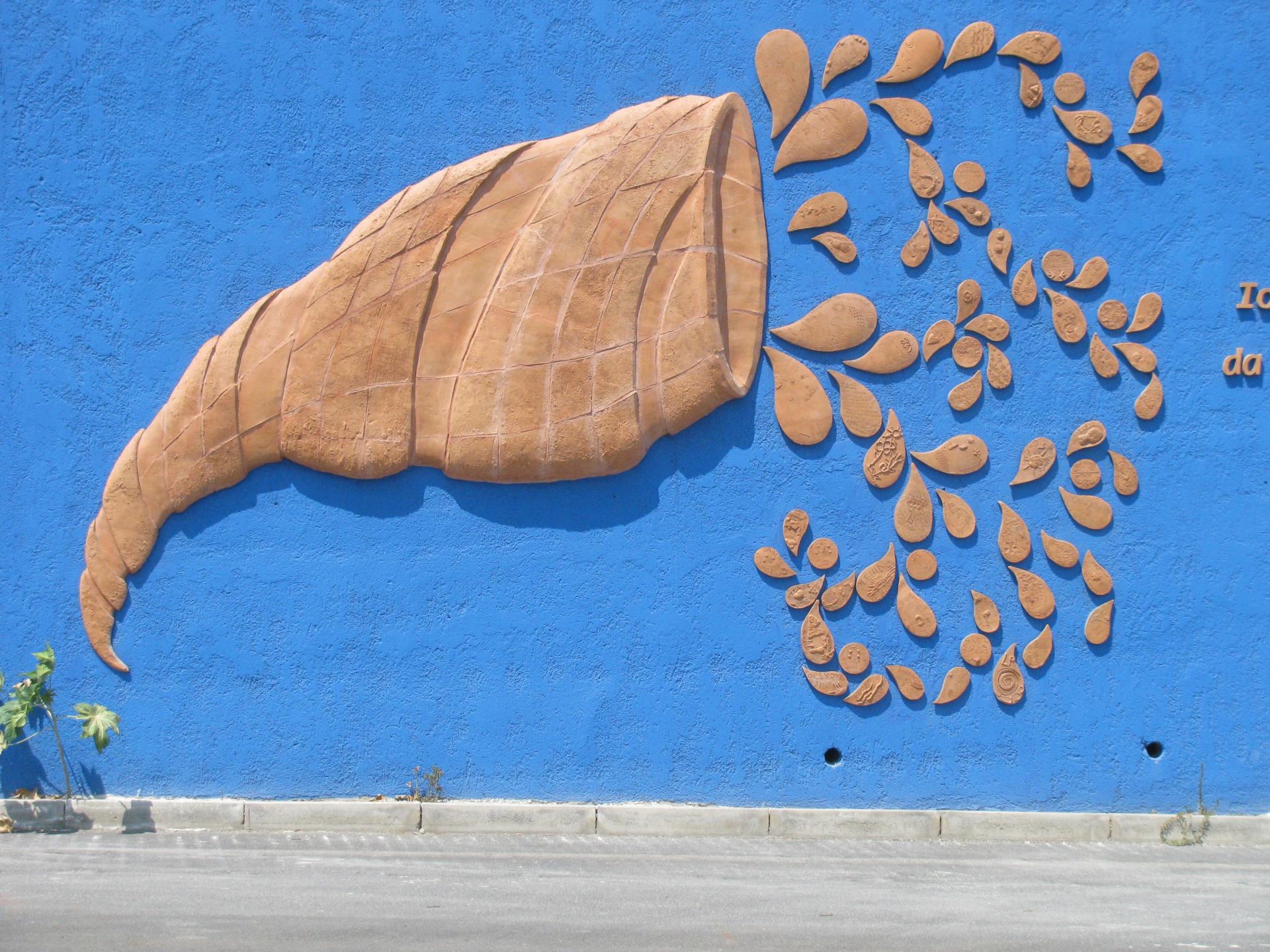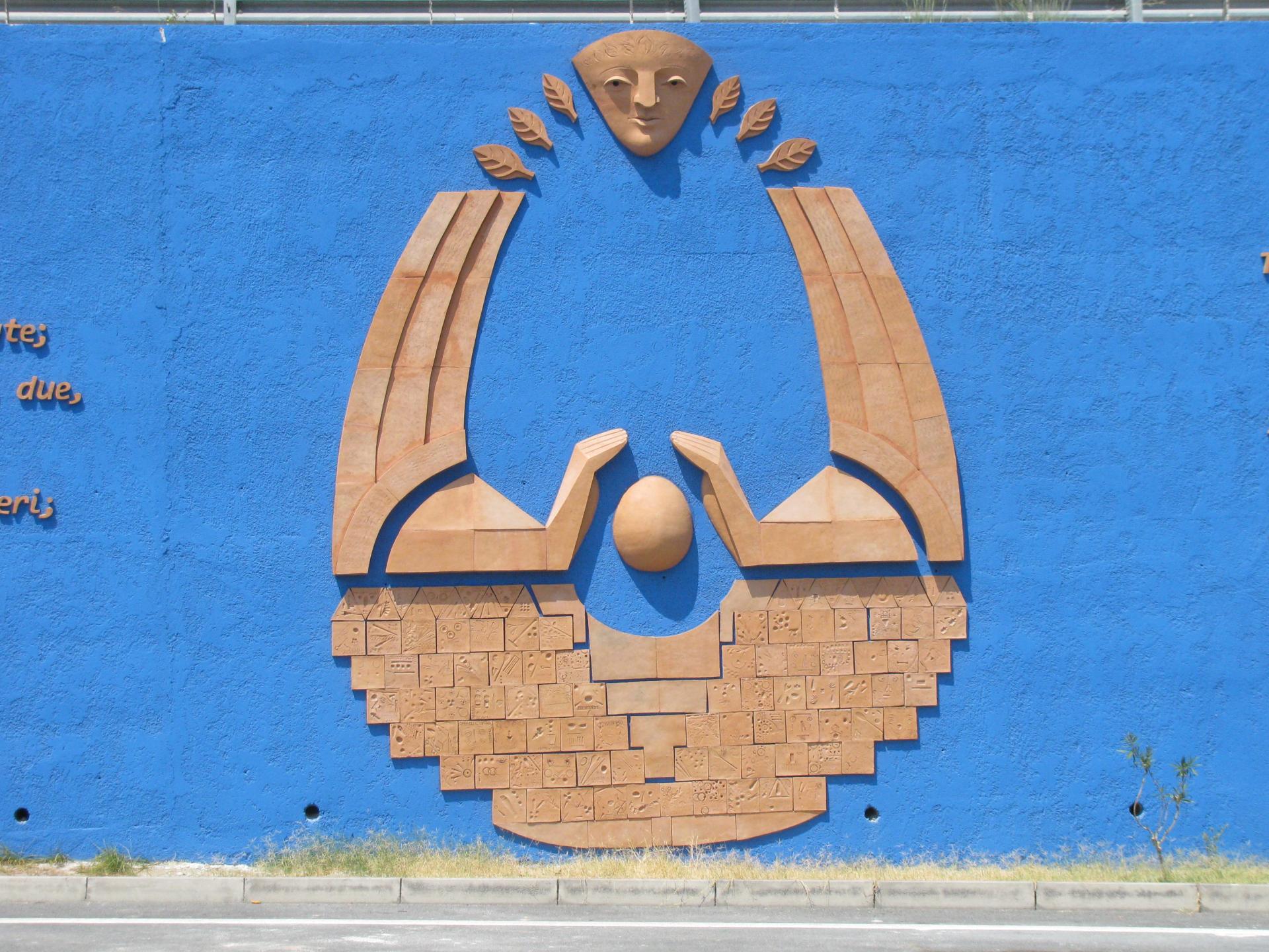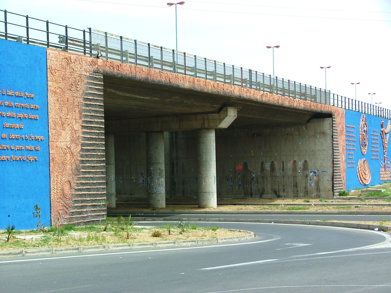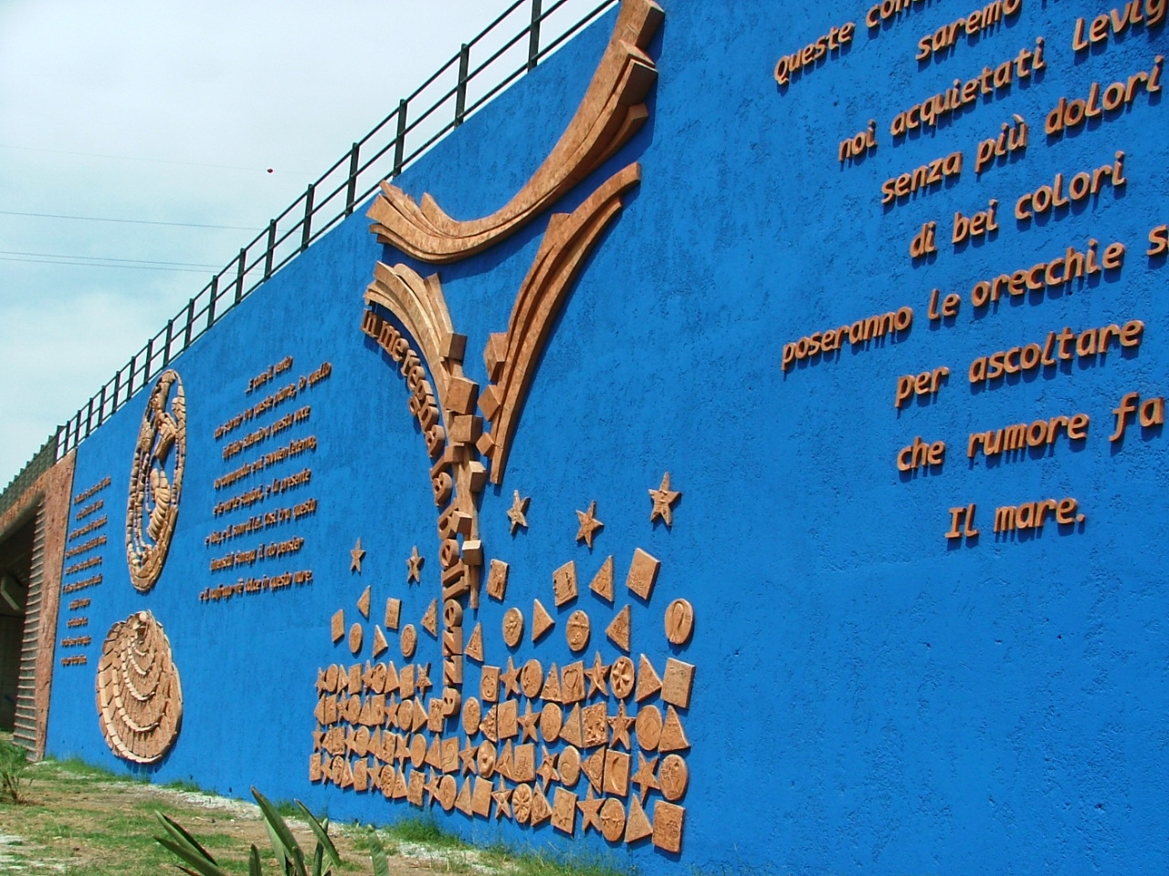 Motorway Palermo-Catania, junction Librino. This was the worst and dangerous marginal area in Sicily in terms of crimes, drugs and mafia. At the biggest roundabout, along 500 mt of concrete motorway's passage wall, Master Antonio Presti built in 2009 “The Beauty's Gate” (translation from the original Italian version the “Porta della Bellezza”), which is the biggest land art installation composed by 9000 artefacts/elements terracotta made in a school laboratory by the cooperative contribution of artists, art's student from college, 2000 children and their mums. The“Porta della Bellezza”contains 13 big main art installation and 13 poetries in between. This installation is applied on a cobalt blue wall and the main theme of it is “The Big Mather”. The terra cotta, nature-based material, identifies the circularity and sustainability of this project. So far, neither vandalism or disparaging acts have been perpetrated there. In Librino, periphery and matriarchal land portion in Northern East Sicily with 75000 habitants, women are holding the heavy weight of their family. Since 1990’s, people in Librino have been victim of long-suffering, violence and poverty on a both consciousness and economic level, especially female and kids. The Vision of Antonio Presti is to bring back to women their sacral dimension on a sort of symbolic and metaphoric huge altar, created by the cooperative and intra-generational engagement and exchange of artists, young students and mums. Now, in Librino, new values are raising such as dignity, honesty, vision and kindness. Throughout the love to realize a little piece of terra cotta, each person will respect the value and the beauty of a mum, therefore, respect into the Community and the same for further coming generation. From Antonio Presti's Gift to Librino to a social identity, from a"no-place"with"no-identity" to a home. It’s a symbolic transformation translated into reality. Art is either a therapy to heal a wound and a tool to became free.