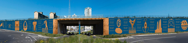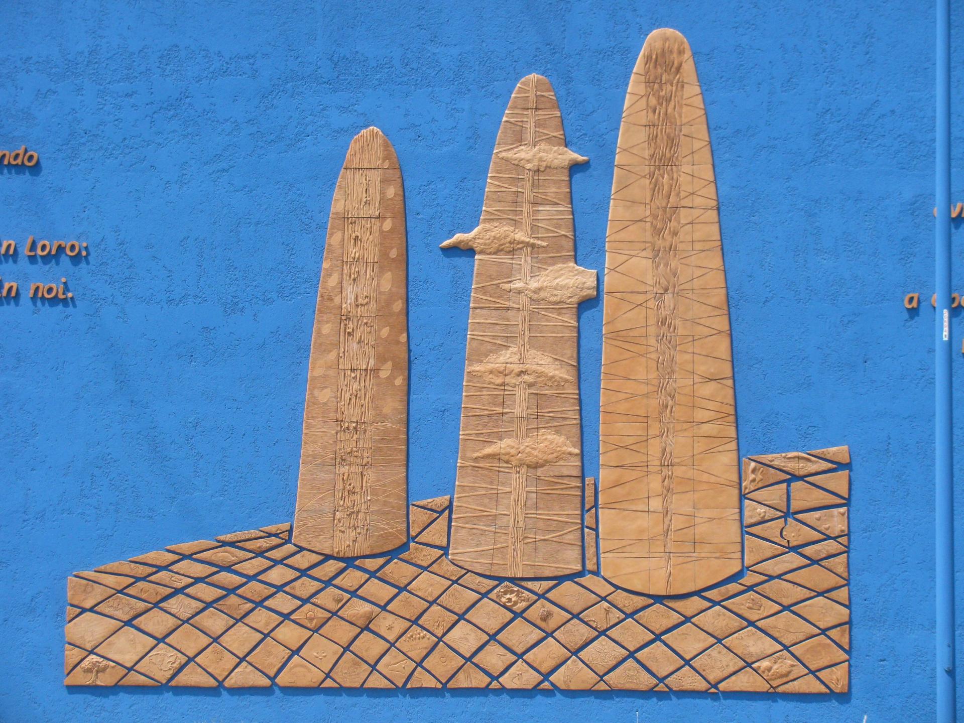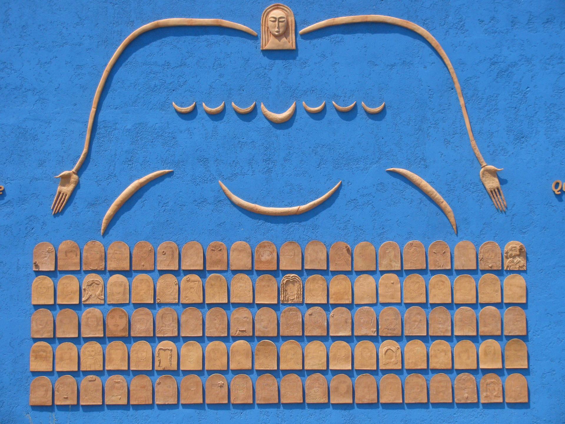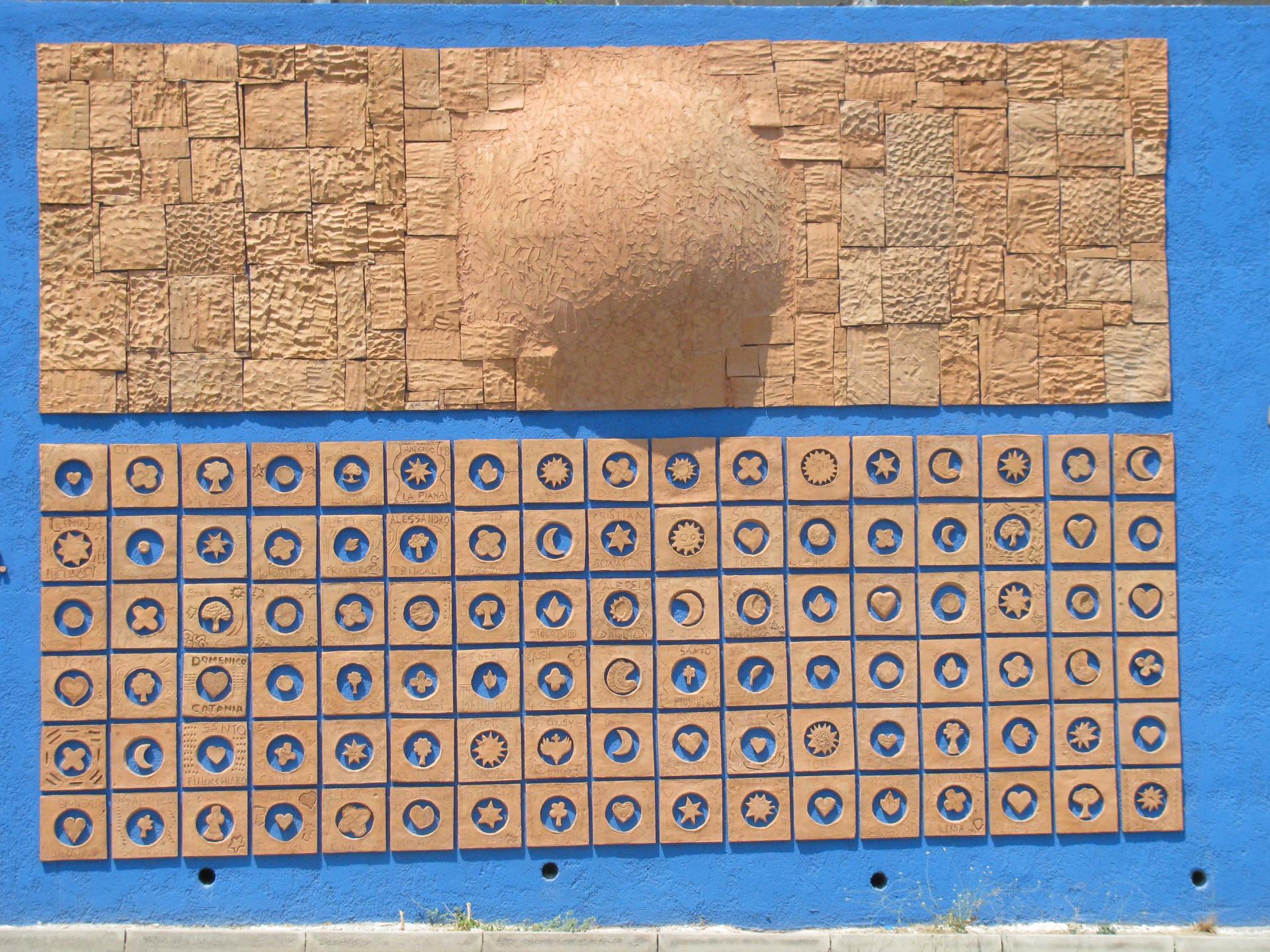 The “Porta della Bellezza” is composed by 13 main art installations and 13 poetries around the theme of the “Big Mother - Mother Heart”. The scope is to consecrate women’s sacral dimension in a sort of symbolic and metaphoric huge altar, created by the cooperative and intra-generational engagement and exchange of artists, young students and their mums from Librino along the process of creation the 9000 terra cotta elements along 500 metres of cobalt blue wall at Librino’s Junction.