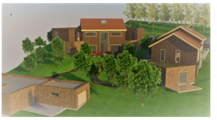 - the re-use of materials, the reduction of land artificialisation compared to the existing (a common house shared to receive family, friends, meetings),