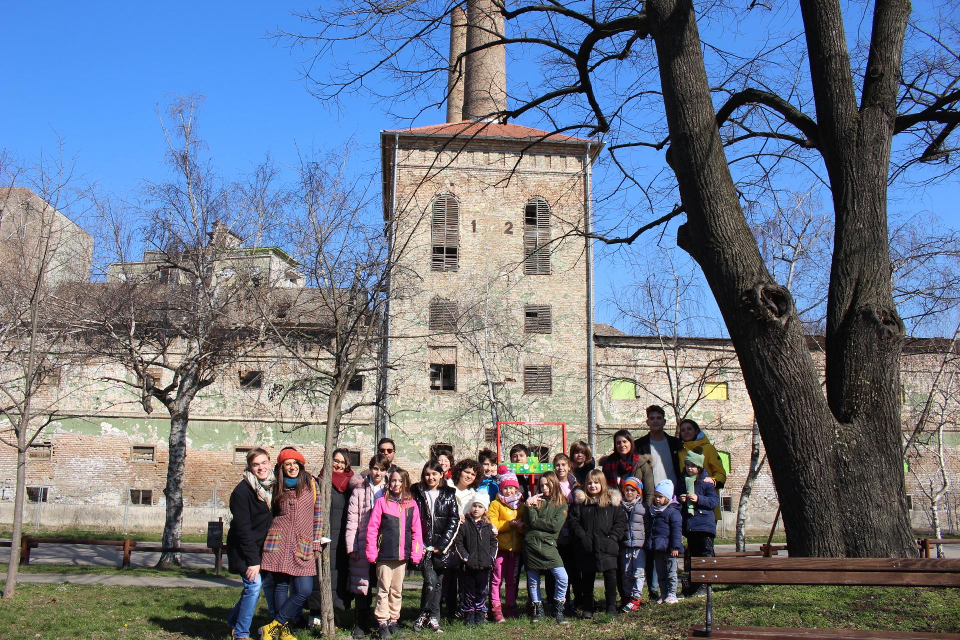 Massive cultural benefit from the workshops was brought through the celebration of 300 years of Weifert's brewery in Pančevo. The kids found out they have a monument older than the Eiffel tower which stands in the city center and decaying. Then they learned every corner of it and presented the new version how they imagine it. We filmed their progress and organized big event on a birthday of a brewery, considering nobody in the city hall wanted to organize a decent celebration. The whole town was there, movie had its premiere, we printed t shirts with children's drawings of the brewery and proudly celebrated the birthday in front of it.