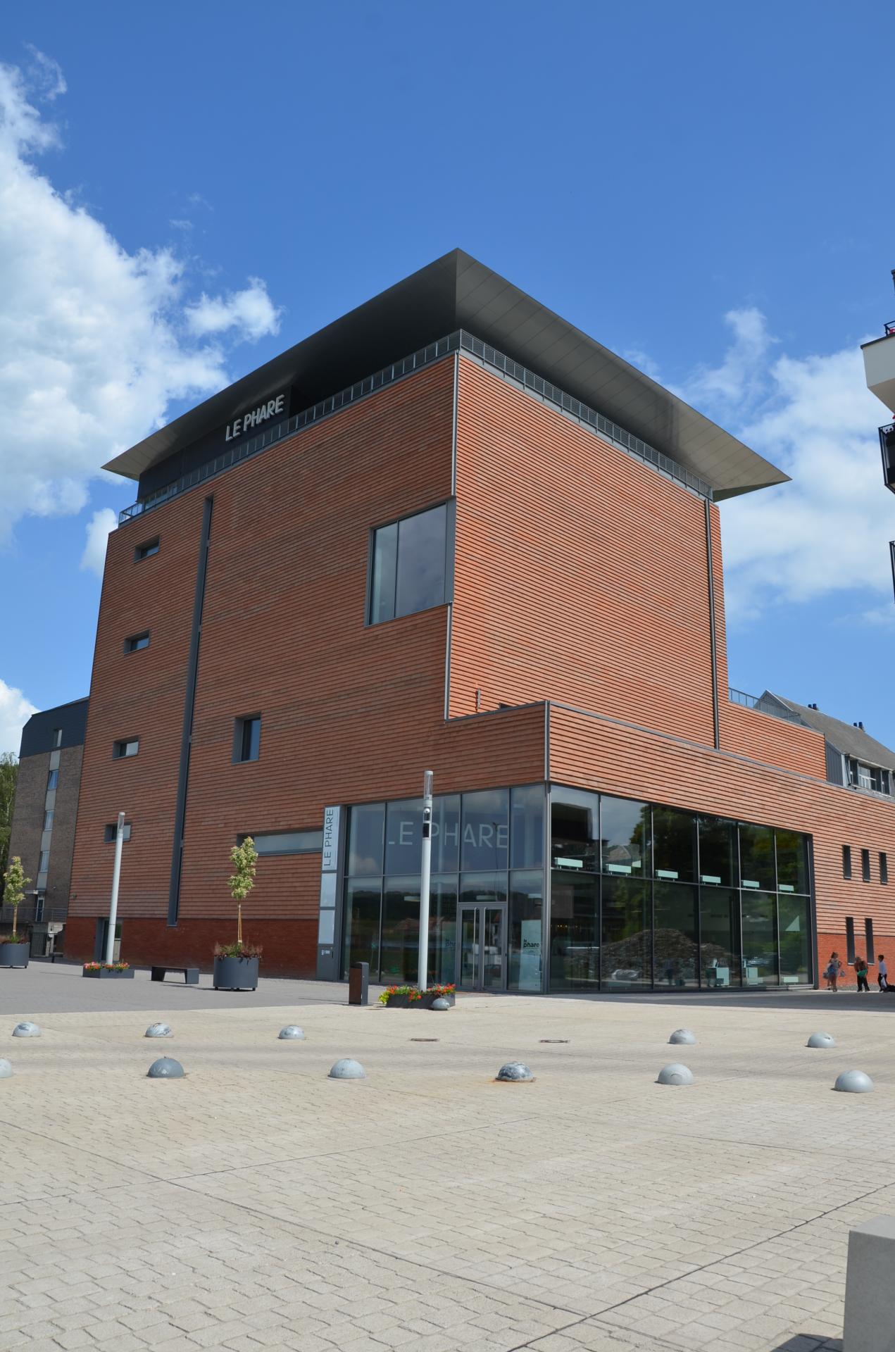 “Le Phare” is the name of a new (but historic for a part) edifice built in a recent and sustainable district in the centre of the city of Andenne (28.000 inhabitants), Wallonia, Belgium. The first and second floors integrate the lobby for visitors, information point and shop displaying ceramic artworks, in addition to the Tourist Office, and the Public Library with a reading room and a multipurpose room. From the third to the sixth floor are displayed the permanent exhibitions of the Andenne Museum (EMA): prehistory (linked to the still excavated Scladina cave: from Neandertal to Neolithic), history (from Roman times), ceramic industry and artworks, as well as workshop rooms, multipurpose rooms, temporary exhibition rooms, and a panoramic terrace.