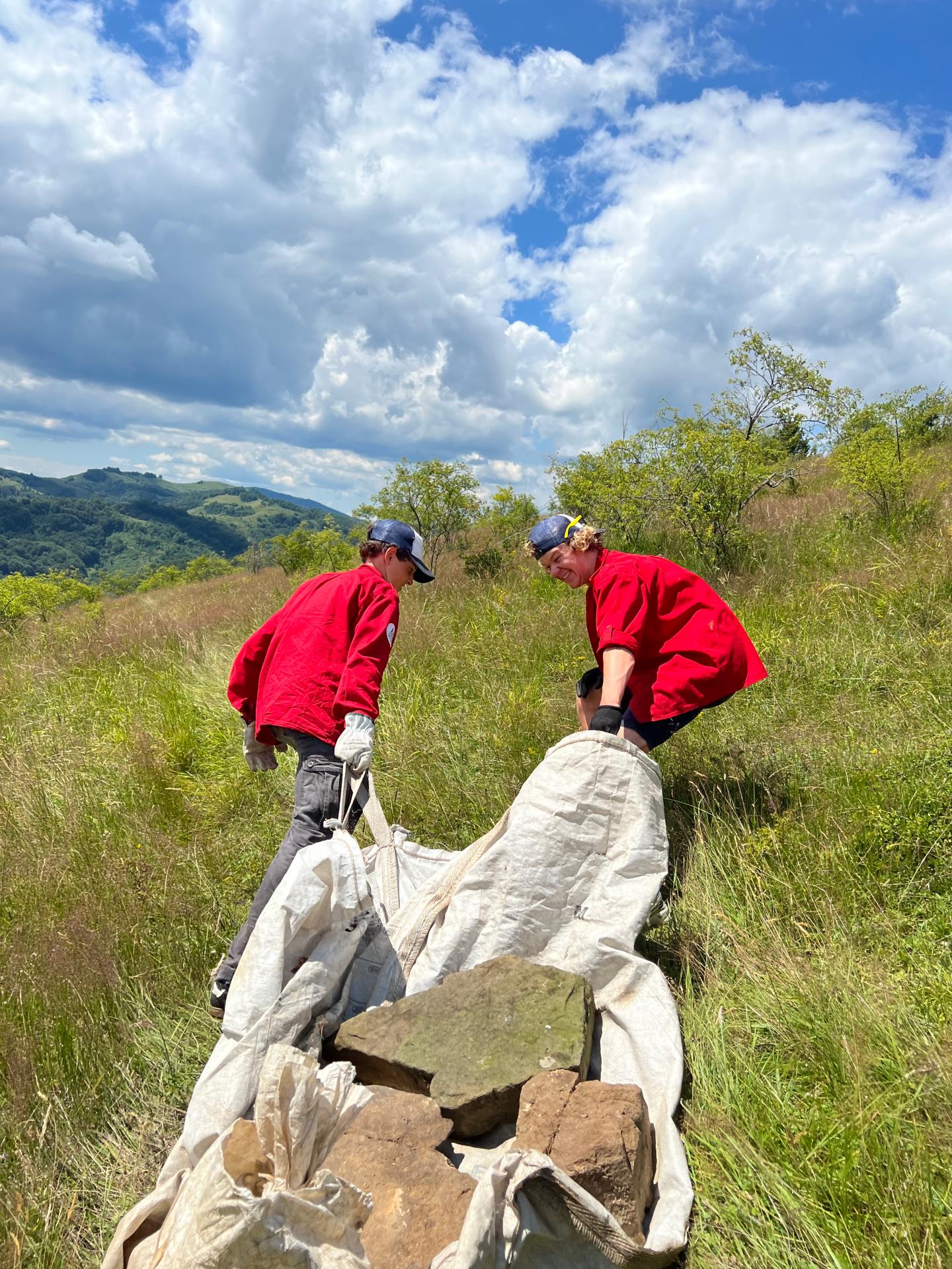 Our evolution with teaching values of sustainability and heritage conservation took us from staff members learning crafts by them selves to volunteers organizing entire restoration sites and, in the end, children experiencing unique camp activities. The results can be seen at the location of the "LONG AGO" camp, in the shape of clear outdoor playgrounds which have been saved from unwanted vegetation, a new straw roof for the original barn and a new restored building, that will house the bread oven. These results demonstrate the possibility of refunctioning old rural buildings into a teaching facility, only with the help of an NGO, volunteers and sponsors. This is a clear proof that people from different backgrounds want to regain a sense of belonging to a historical evolution of man kind, which had its moments of glory. The rural life in the Apuseni Mountains was such a period and not loosing its traces was a strong motivation to all our partners. They, we and the restored location were the first direct beneficiaries. The whole process started in 2012 also influenced the mentality of the locals towards valuing their culture in a touristic manner. We can say that only in the year 2022 we properly started working for our main beneficiaries that we had in mind, the children. We still have much in plan for them, like preparing more camping spots for tents, a traditional kitchen and a new small scale building for kids to practice straw roof building. A bigger acquisition, we can not afford yet is another property, with a barn and a stone house, that has a better incline and is more suitable for a playground. Buying that property would give us the possibility of catching a small river and build a traditional mill. With this final building on site, kids will be able to make their own bread, starting with planting and harvesting the wheat, taking the grain to the mill and baking in the oven.