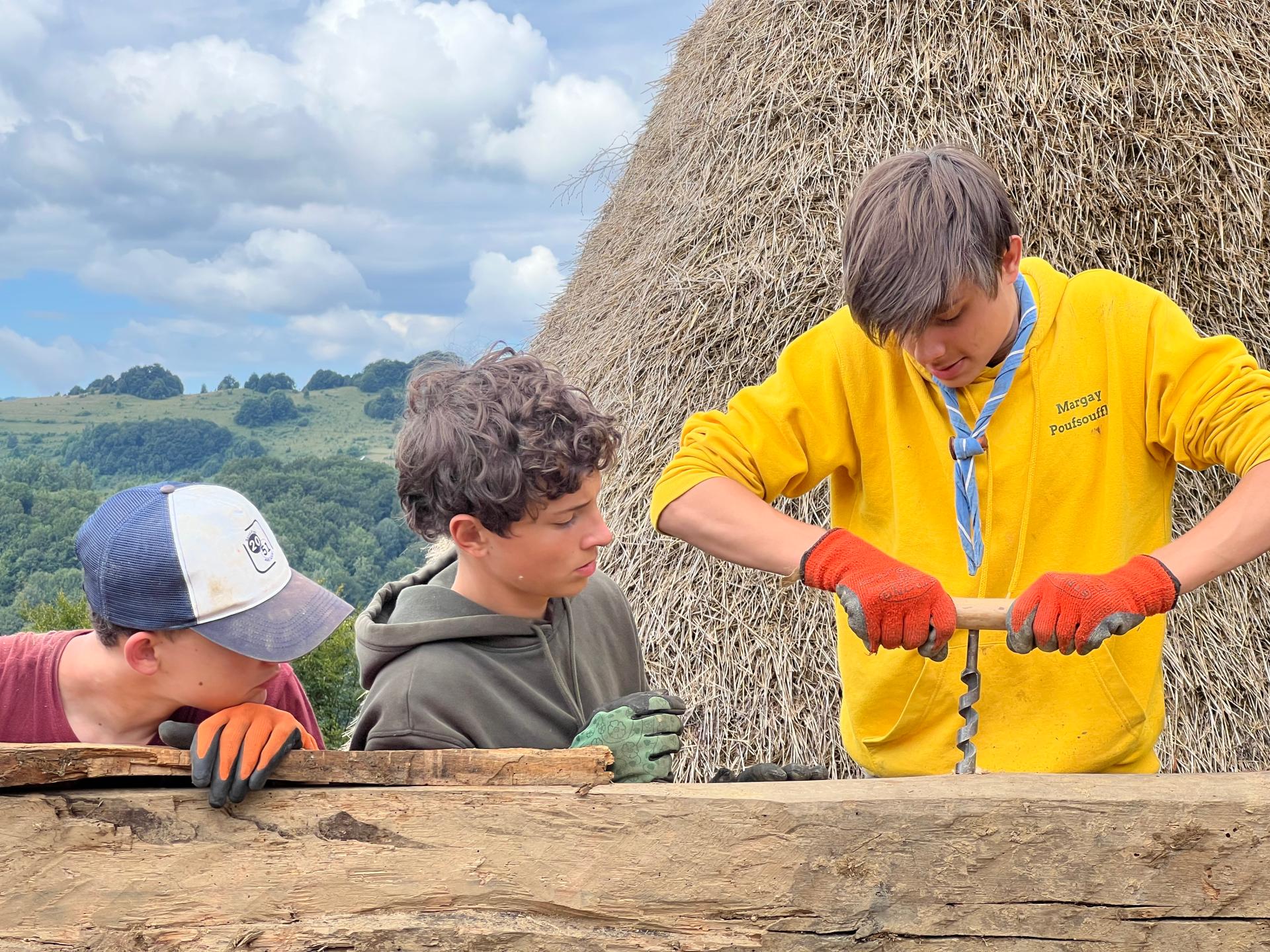 This urban-rural interaction creates many positive emotions and cultural benefits and it was our motivation to start the camp in Intregalde. Our objectives are to conserve the beautiful architecture, by learning and teaching about traditional crafts and building techniques, in a place where you can not only admire, but also experience, hands on, the way people used to live without electricity. We already met these objectives in the construction of the camp site, located next to a traditional barn. The straw roof was restored in 2021, with volunteers from all Romania, alongside villagers. In the 2022 we saved and moved a cottage, with the help of Belgian scouts. The project was also funded with organized day trips to the “LONG AGO” camp, which resulted in donations.