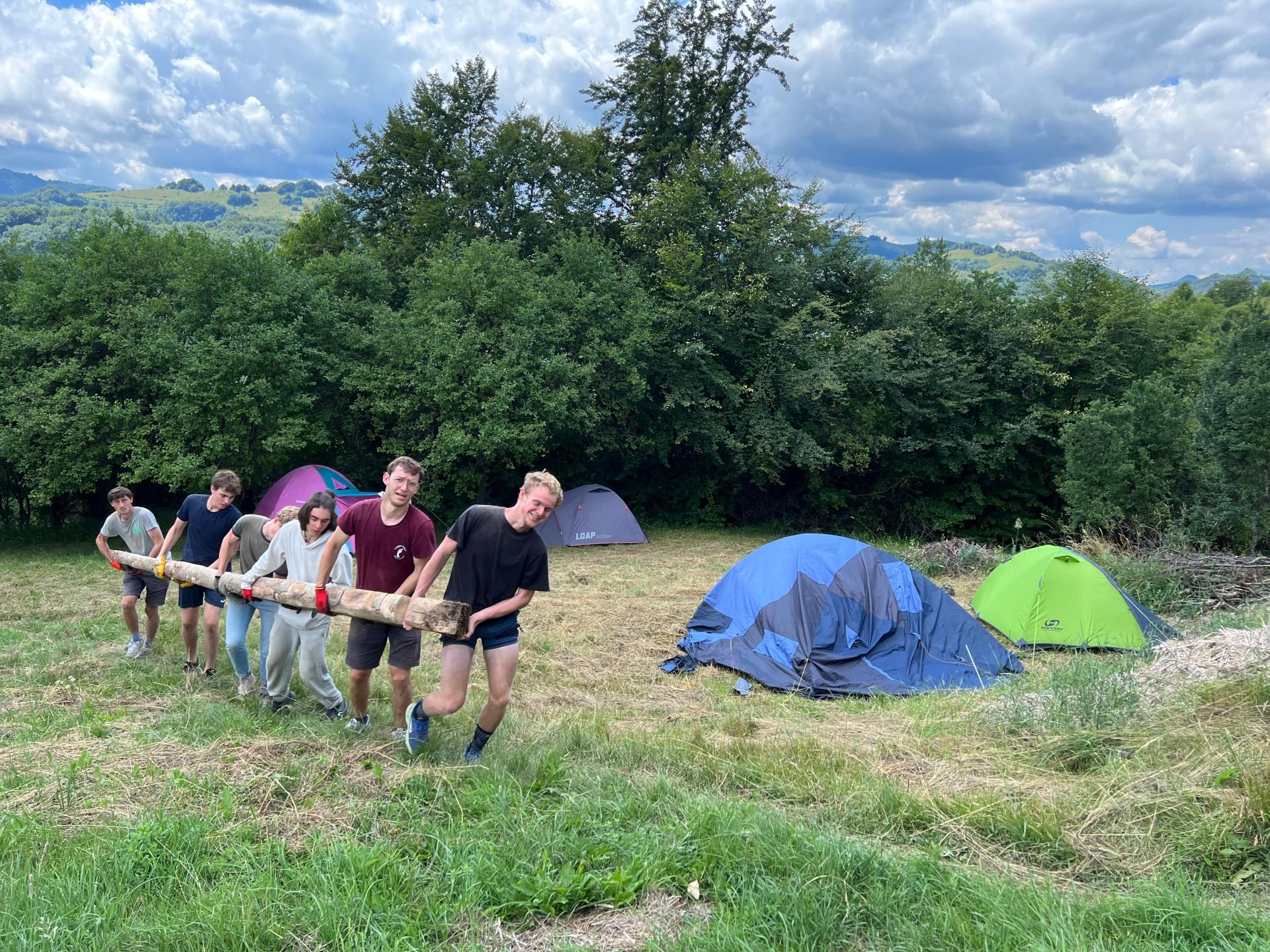 At European level we partnered with a boys scout group from Belgium, which literally helped moving things in the summer of 2022. The teenagers worked a whole year to fund their trip to Romania and help us move a traditional hut, that was 500 meters far away. We also visited and helped the villagers and spend an evening with traditional Romanian food and music. At the end of 2022, we started the collaboration wit an NGO from Germany, Kukuk Kultur e.V. and the town hall. We planned to build a playground in Intregalde, next to the only still functioning school of the commune. Camp visitors will be glad to have a place to play, after 40 minutes of bus drive.