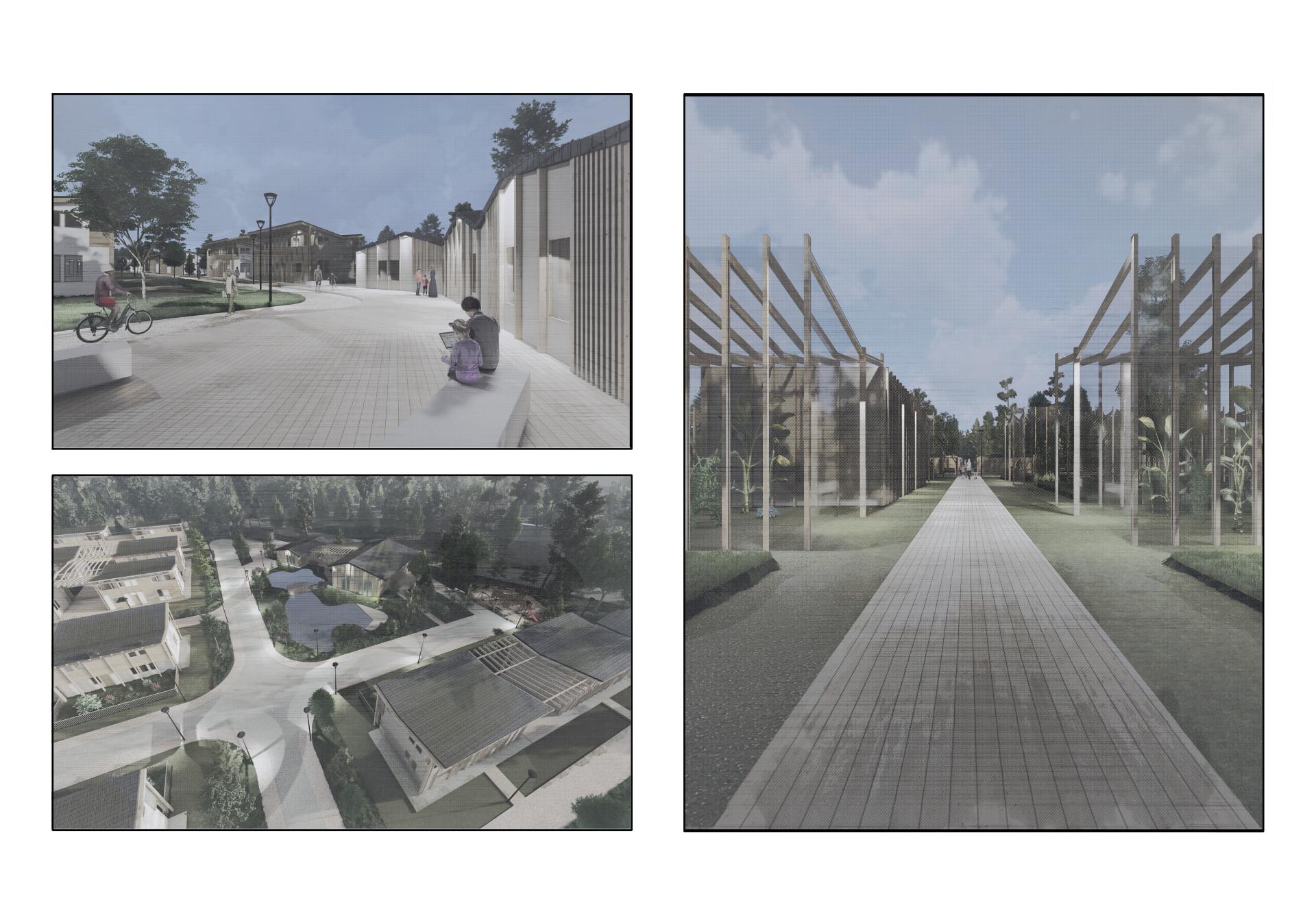 The concept primarily addresses the problem of refugees, it is an attempt to create a friendly living space for them and provide a chance to build relationships with local residents. In addition, the project is maximally pro-environmental. It is an attempt to respond to global warming and the deteriorating condition of the environment.