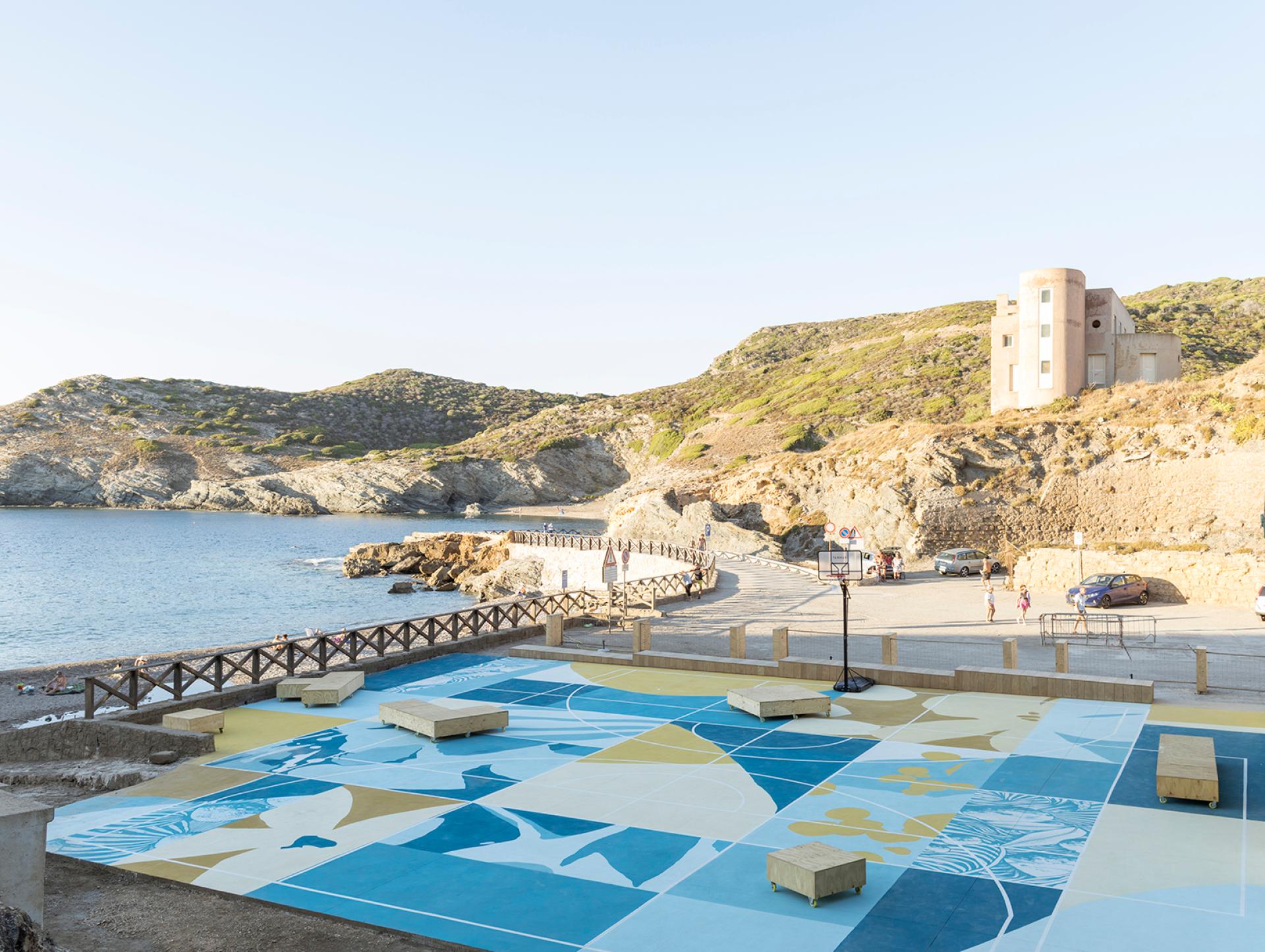 The play space "FRONTE MARE" - Previously used as an unregulated parking area, a degraded transition area of over 500 square meters has been revitalized and returned to the community as a space for play, socializing, and cultural and sports events. It is a true square overlooking the horizon and the sea, equipped for basketball, volleyball, pickleball, and more.