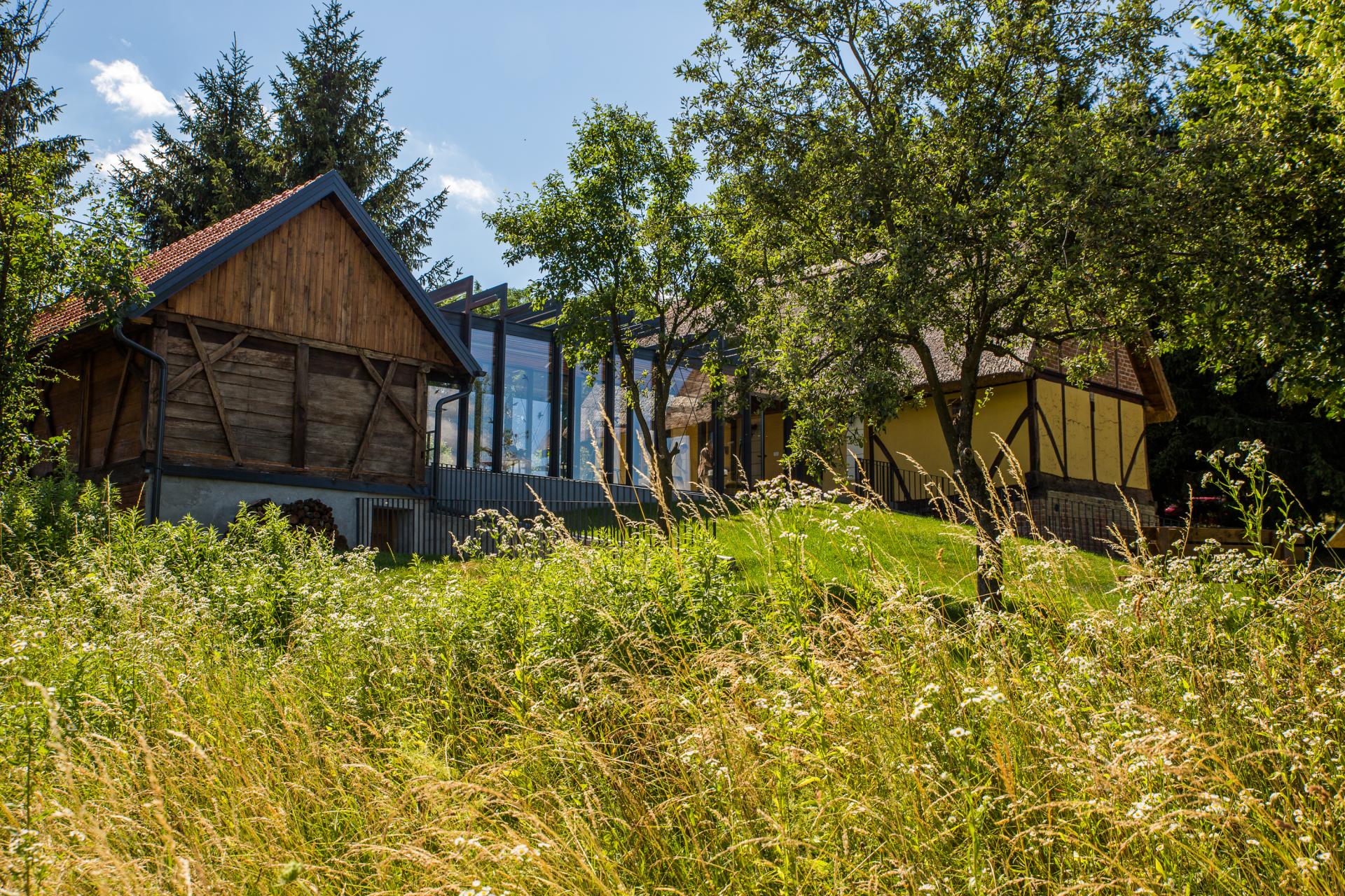 In order to demonstrate living in harmony with nature, offering experience in an innovative way, the exterior of the property is carefully arranged and cared for; ancient varieties of fruit trees, a well, a bio garden in harmony with nature, meadows without invasive species and a gazebo as a space for socializing in an inspiring environment. Special attention is paid to the depiction of man and his traditional activities of annual mowing of meadows, which is crucial for preserving the habitat in conditions favourable for the survival of butterflies.
