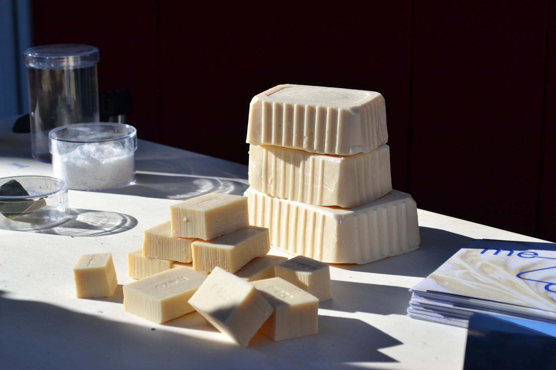 Furthermore, the malleability of soap is utilised for participatory design, as we did in an event where bypassers could shape the soap. This follows the goal of not solely creating a product but using it as a medium for exploration and education on recycling.
