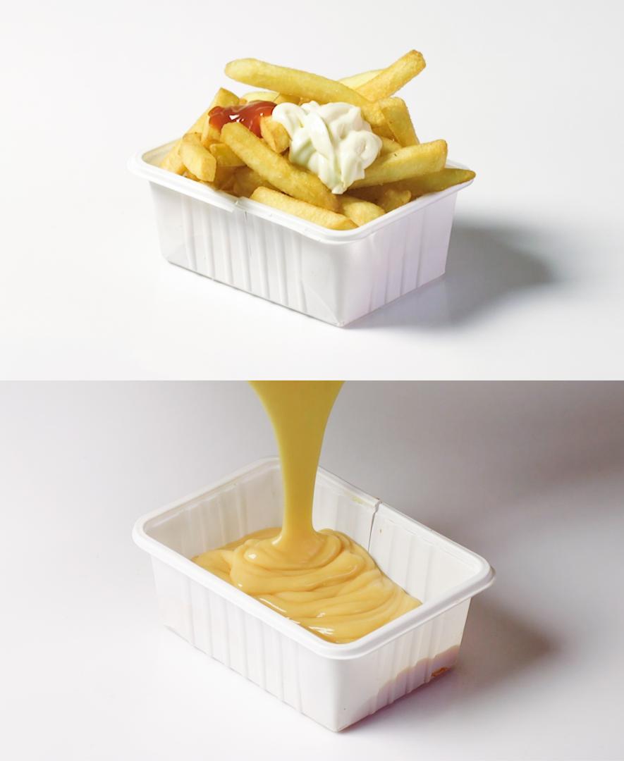 The key intention of the product is to showcase the transformation of something considered disgusting into something considered precious to highlight the unused potential of materials through recycling. Soap as an example pictorially shows the reversal of “dirty” waste materials such as used frying oil and ash into something you literally use to clean yourself. This material approach was also used aesthetically. Plastic fry trays were repurposed as moulds and give shape to the soap bars in connection to the source. Decoration patterns and engraved details of the single-use plastic get transferred to the soap bar and give it a peculiar but sleek finish, which is valuable to counteract preconceptions of recycled products. By taking up the form of the tray also the design of the packaging gets repurposed and emphasised.