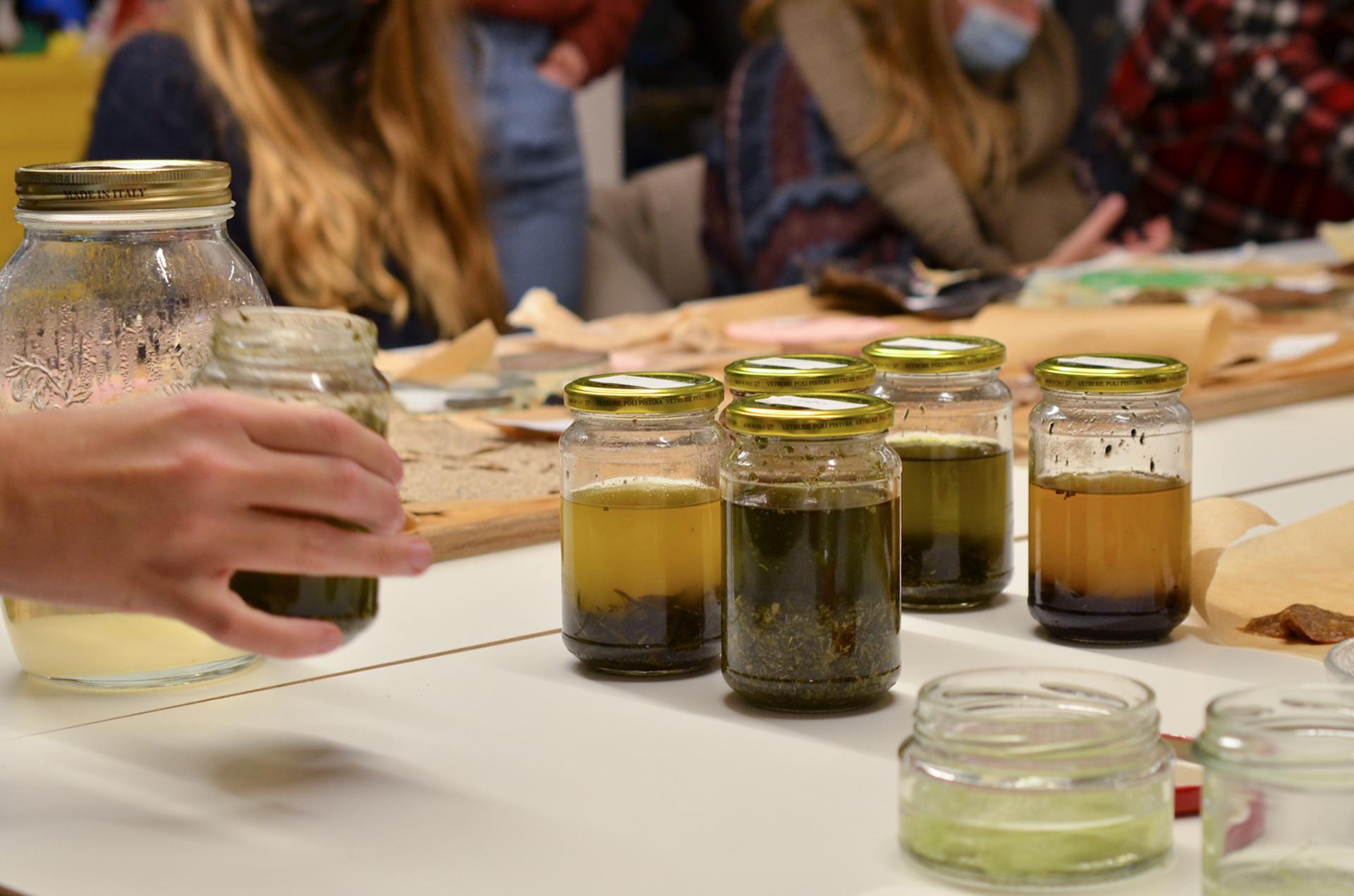 This learning led us to the question of scent related to soap and its strong connection to emotions and memory. Therefore we first did a sensorial walk through the neighbourhood, collecting different herbs and leaves. Additionally, we contacted an olfactory designer, with whom we discovered the functional advantage of preserving the soap through the use of essential oils.