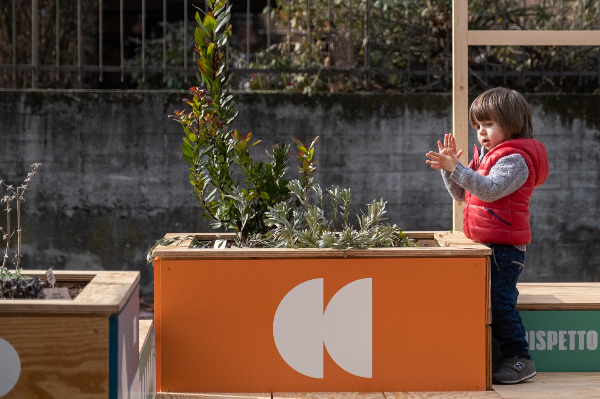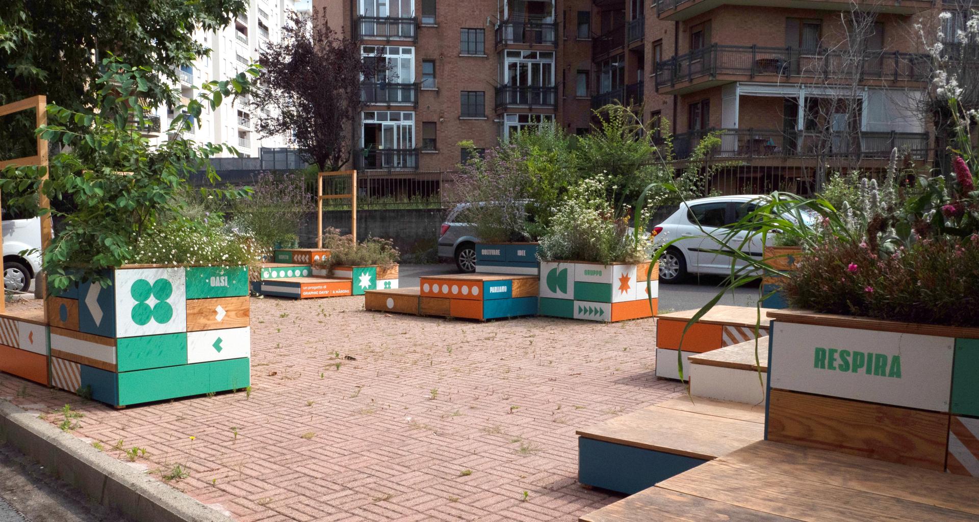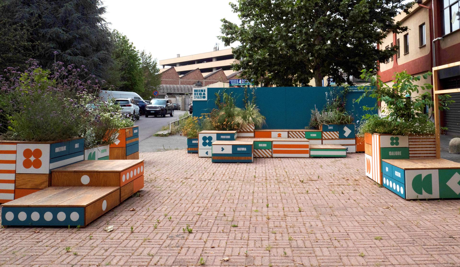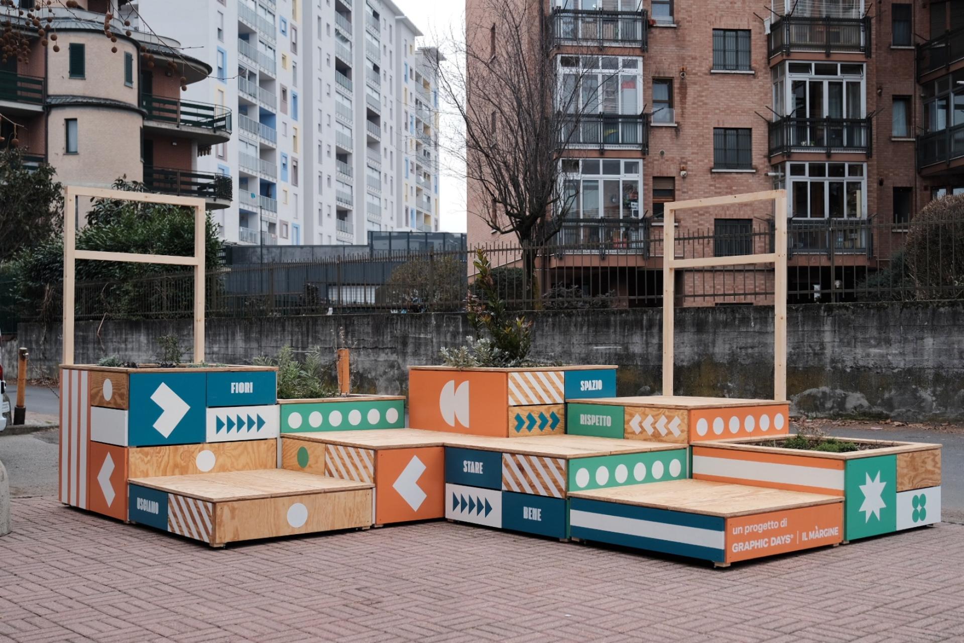 Through the collaboration between Graphic Days® and the Il Margine Cooperative, the "Mini Mega Spazio" project has the overall goal of transforming a peripheral industrial area previously used as a parking lot into a space open to everyone and a sensory garden, actively involving the local community and vulnerable users of the Il Margine. This has been achieved through the introduction of multifunctional modular structures, new tree species, and the programming of cultural and educational events.