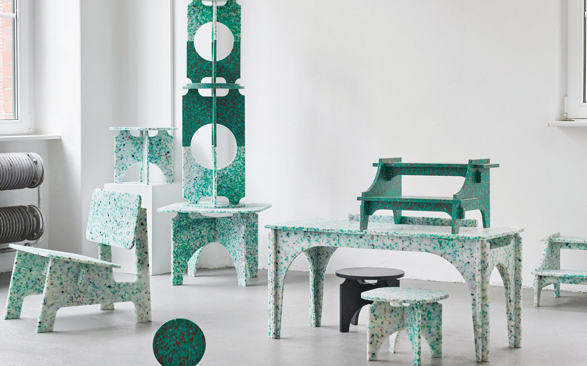 All pieces are resistant and durable, mono-material and very easy to assemble, they are suitable for indoors and outdoors and can be cleaned with almost anything. 100% RECYCLED 100% RECYCLABLE