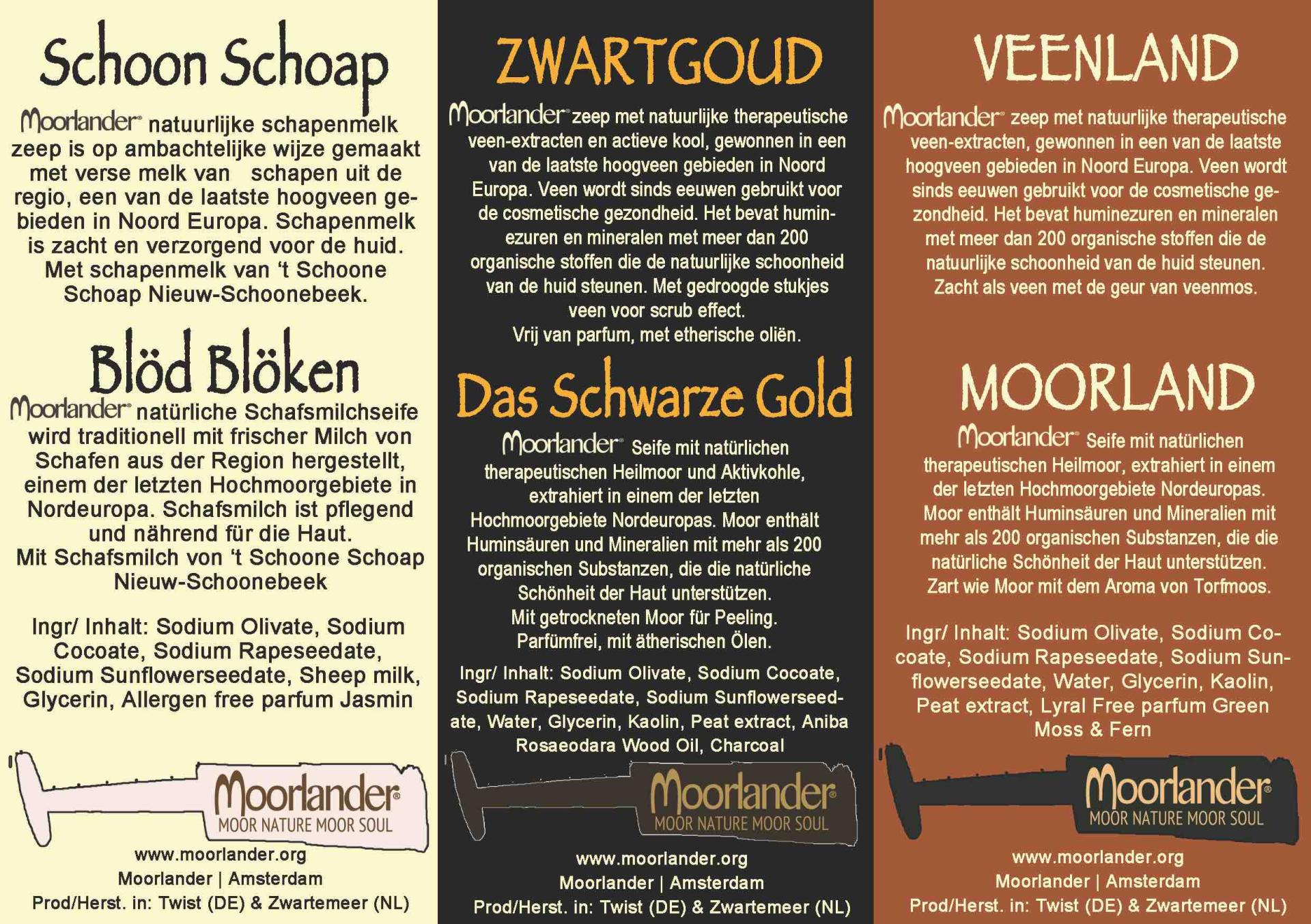 -Production of peat related products: Natural peat from Germany is purchased in Tsjech Republic (Moorlander purchases the natural peat and sells back the soap to stakeholder), fresh sheep milk is purchased from local farmer in the Netherlands, sheep wool is purchased with partner in Poland. Names and contact details of these business stakeholders upon request.