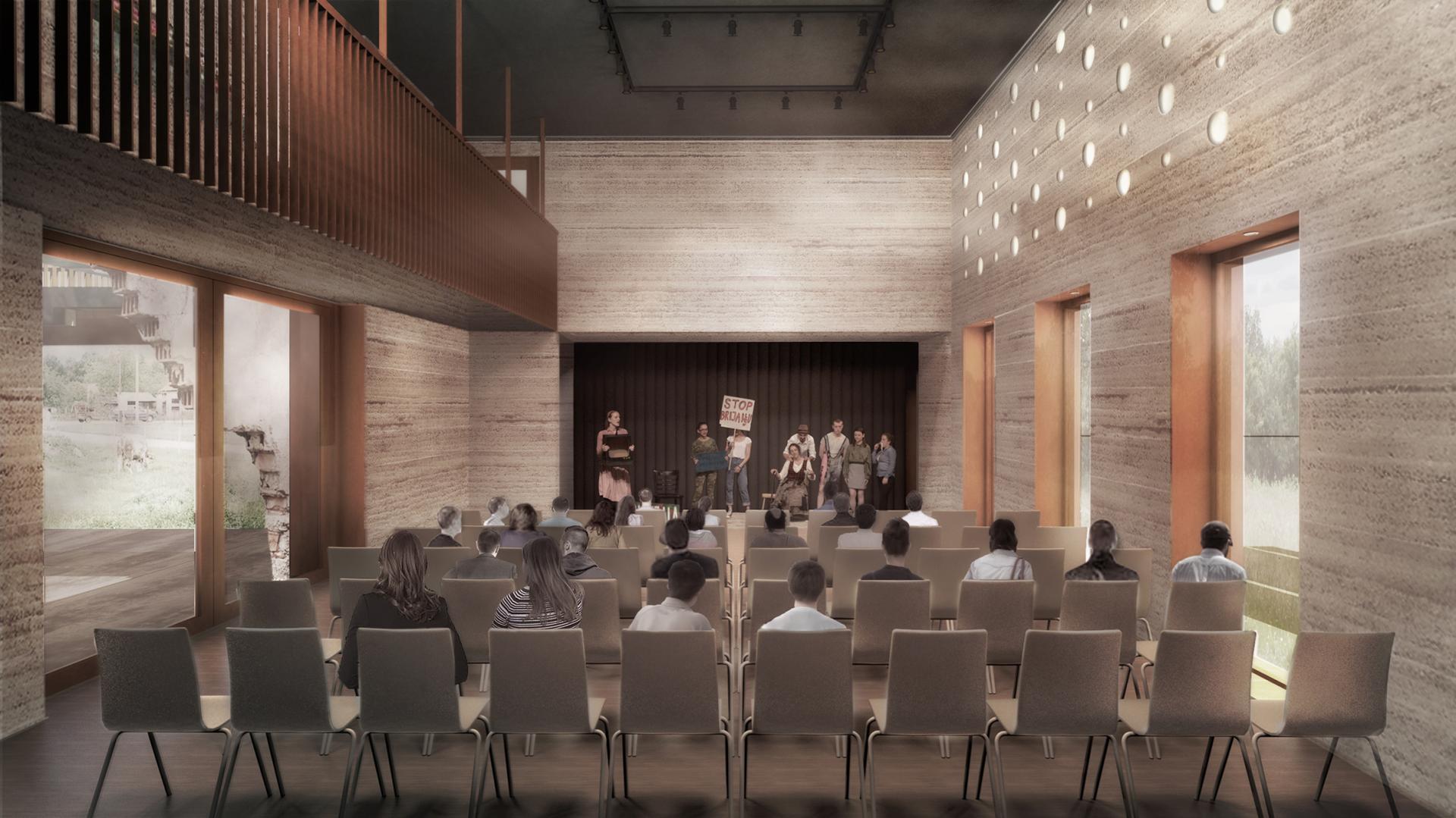 Using carbon-neutral rammed earth technology will reinvent local earth-building traditions. This innovative sustainable technique is a slow and performative process that will turn the building site into a forum for sustainability, peacebuilding activities and dialogue.