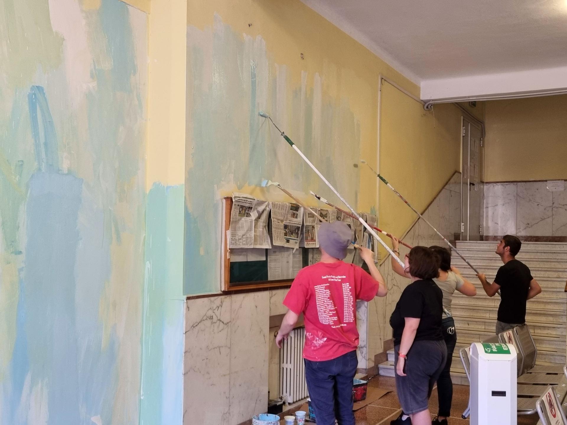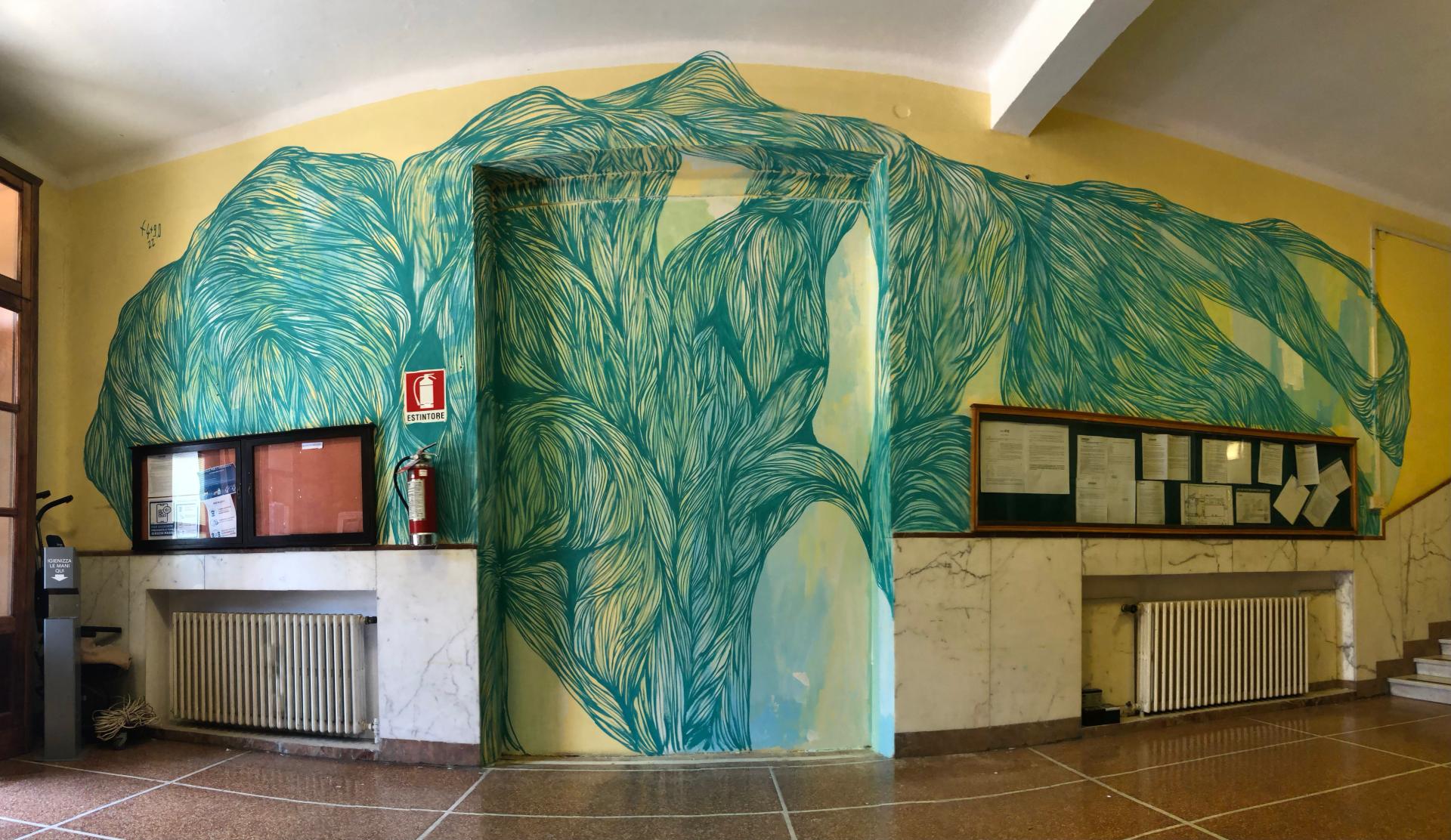 The workshop has been realized from April to July 2022 and it engaged 1 artist, 2 curators, 12 students, 3 teachers, 1 film-maker and a variety of curious citizens who got in touch with participants during the production of wall painting and/or the exhibition.