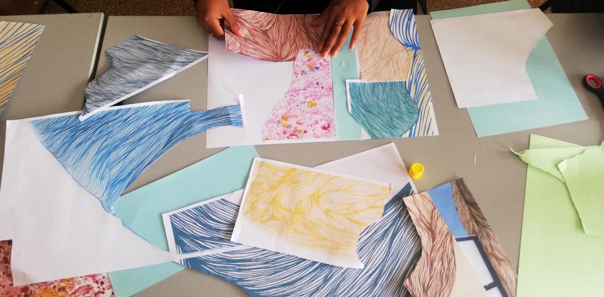 The workshop activities varied from frontal lectures about public art and street art to experimentations with different artistic techniques: ink graphic, painting and collage; until the production of patterns for the development of a real mural artwork.