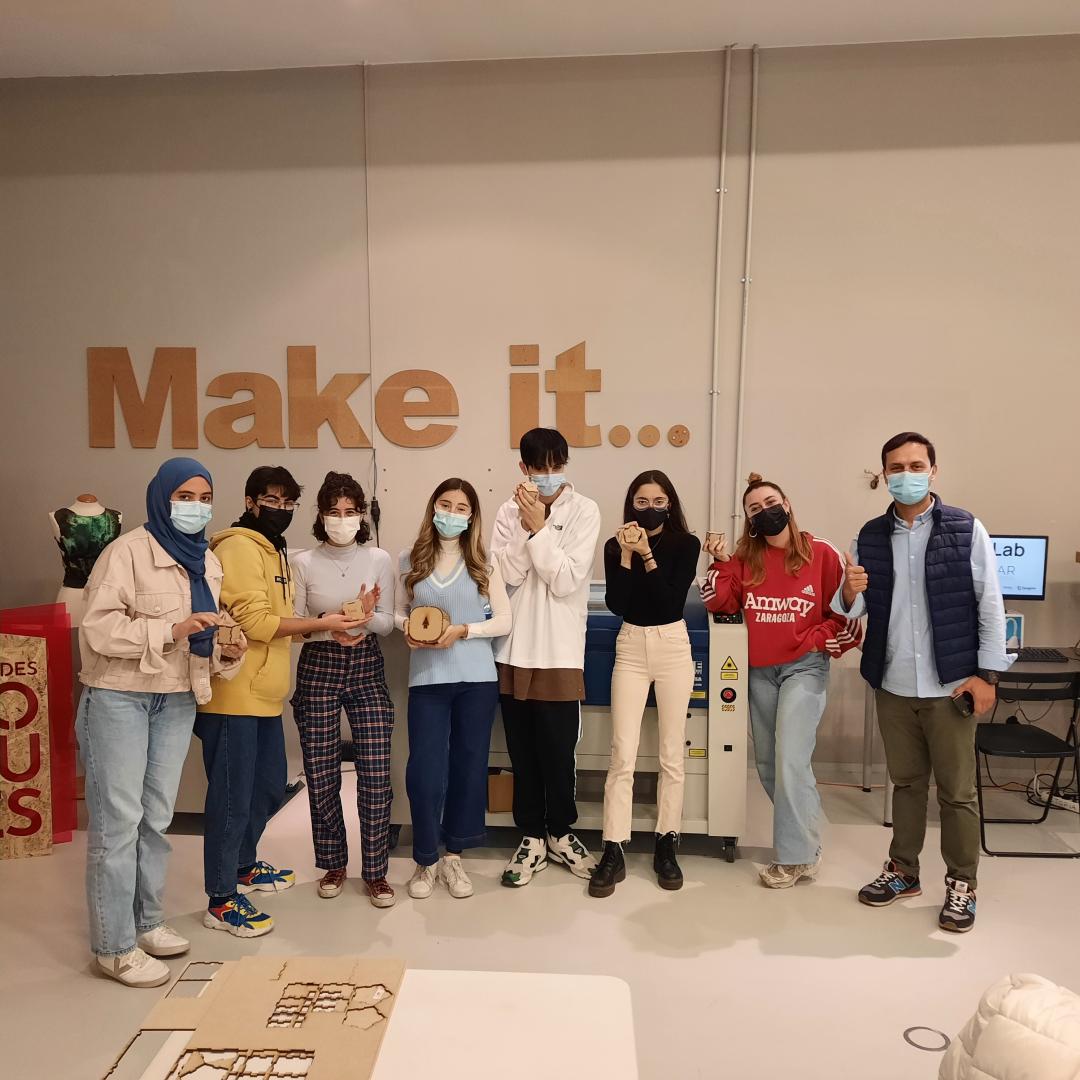 The project basically involves three agents or institutions. In the case of the Escuela Superior de Diseño de Aragón, it coordinates the initiative, given that the students are the initial agents on whom the project has an impact, but who in turn develop the design proposals and research and reflect from a combined action between the academic, the formal, the non-formal and the experimental. In second place we find the LIA-CESAR Laboratories of the University of Zaragoza. They are the main agents both in terms of human resources, as they provide the experience of the coordinators of the digital fabrication and biomaterials laboratories, as well as the material resources so that the proposal can evolve. In any case, we are both in a constant learning process to improve the processes and analyse the possible impact of this proposal beyond the scope of action. Finally, the city council, through the Centro de Arte y Tecnología-Etopia and the Coordinadora, provides all the management and planning aspects as well as those related to the cultural dimension of the proposal.