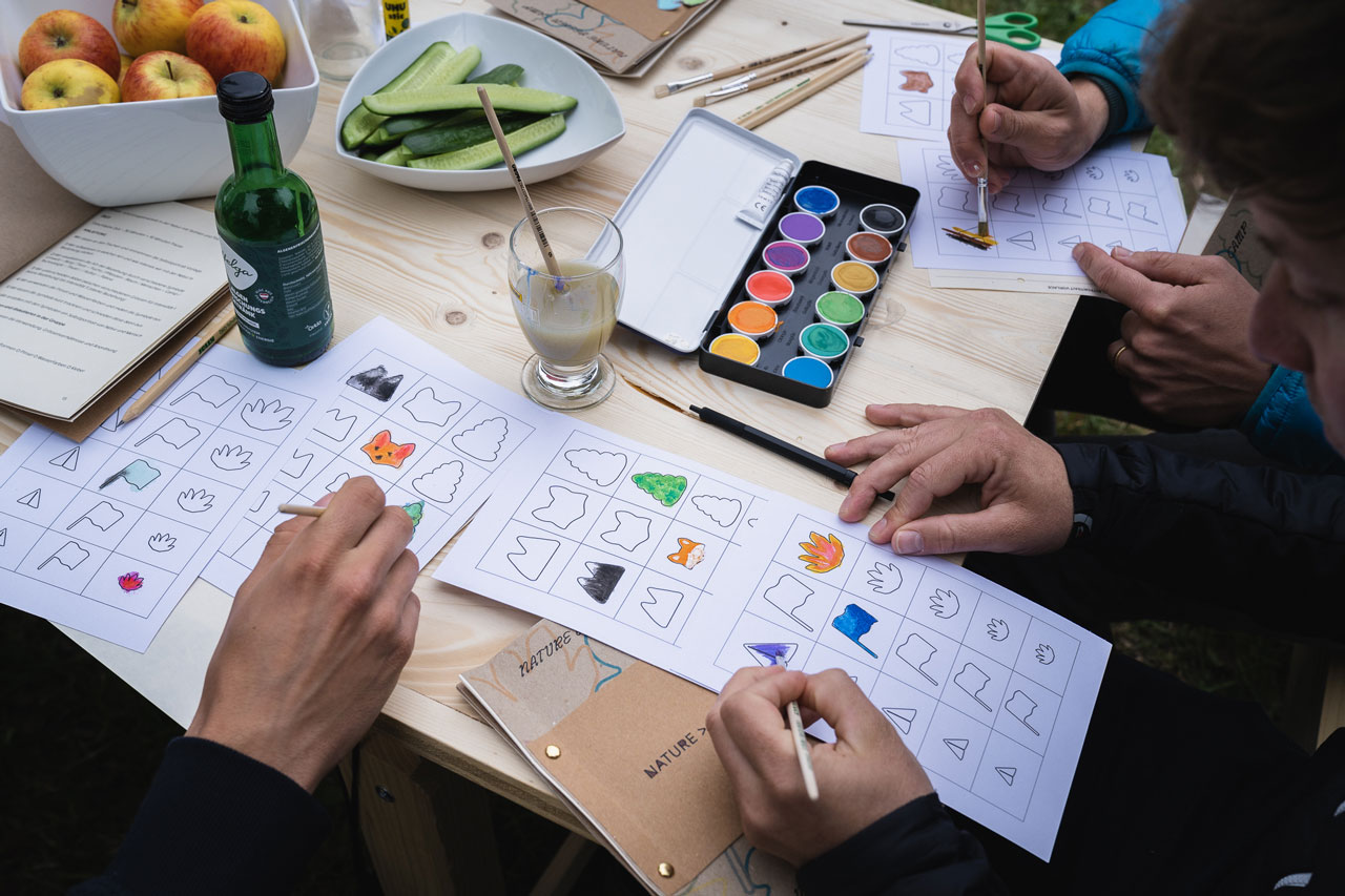 Considering once again how to build relations with nature by design methods, there is a strong argument for a design camp and design workshop as a method to connect humans and the landscape. Also, the participants refer to the NDC as a method of an all-over positive atmosphere, where it is possible to create a dynamic to work with a complex topic. The observations show that the method can create an enriching discussion in a small bubble for a big topic. The participant group was highly engaged in the exercises and interacted with the design workshop toolkit independently. The examination of the design toolkits after the NDC shows that the participants took ownership and individualized their toolkits in various creative ways such as writing free texts, noting down further thoughts, or sketching on the cover and blank spreads.