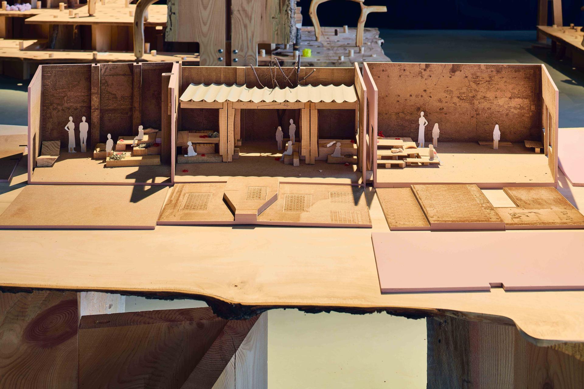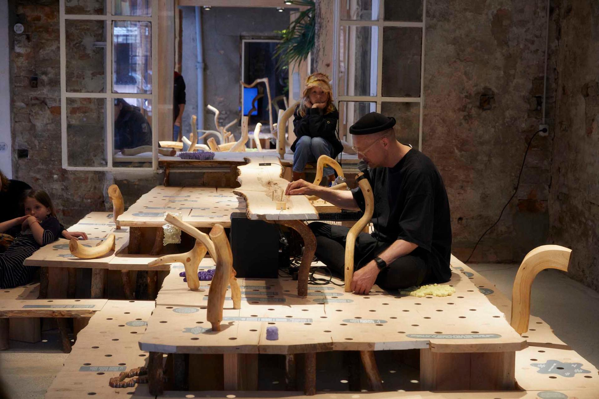 From timber collected over three years, In 2023, NFA built and curated The Children’s Forest Pavilion installation composed as an educational playscape and conceived to acknowledge the unique approaches of children to observe, draw conclusions, explain the forest, and demand agency in forming it. This installation brings together works and findings developed in parallel to outdoor activities held with children in woodlands in Lithuania and Finland. Guided by environmental educators, activists, artists, architects, and foresters, they were introduced to think of forests as negotiated spaces where no single actor has a central stake.