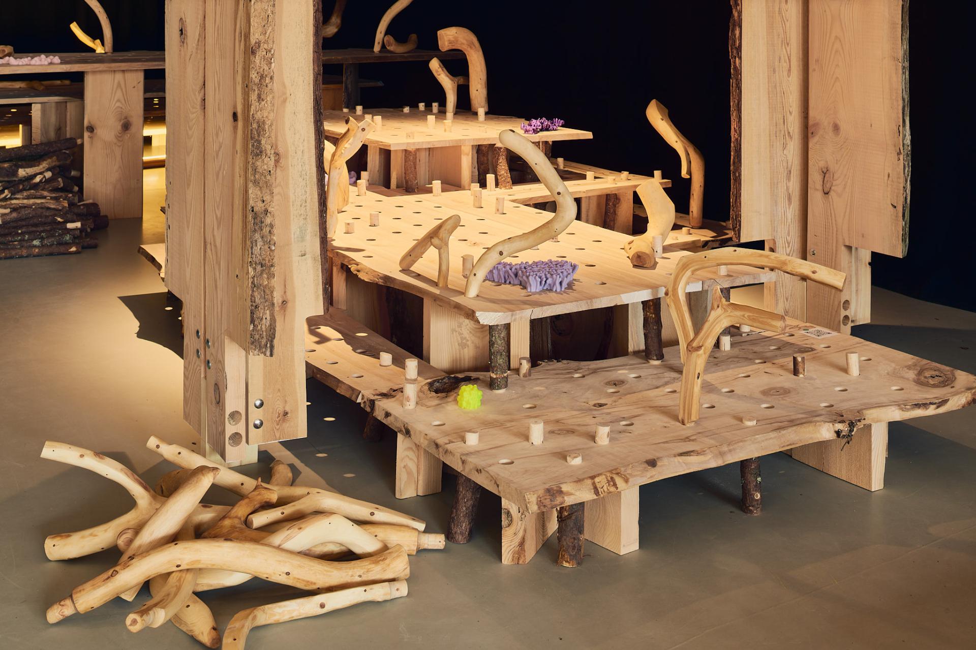 The pile of timber becomes a signifier for shared knowledge and further debate on environmental relationships and cultural practices in the intersection of politics and technology.