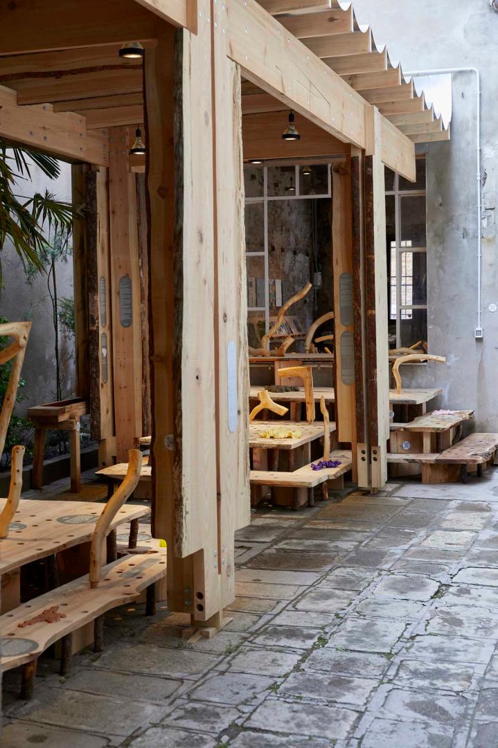 By diverting timber originally intended for biofuel to construct the Natural Timber Seasoning Shed, NFA challenges mainstream norms by repurposing intricate geometries deemed unsuitable for industrial use. This not only showcases a novel approach to timber utilization but also redefines aesthetics in sustainable design practices.