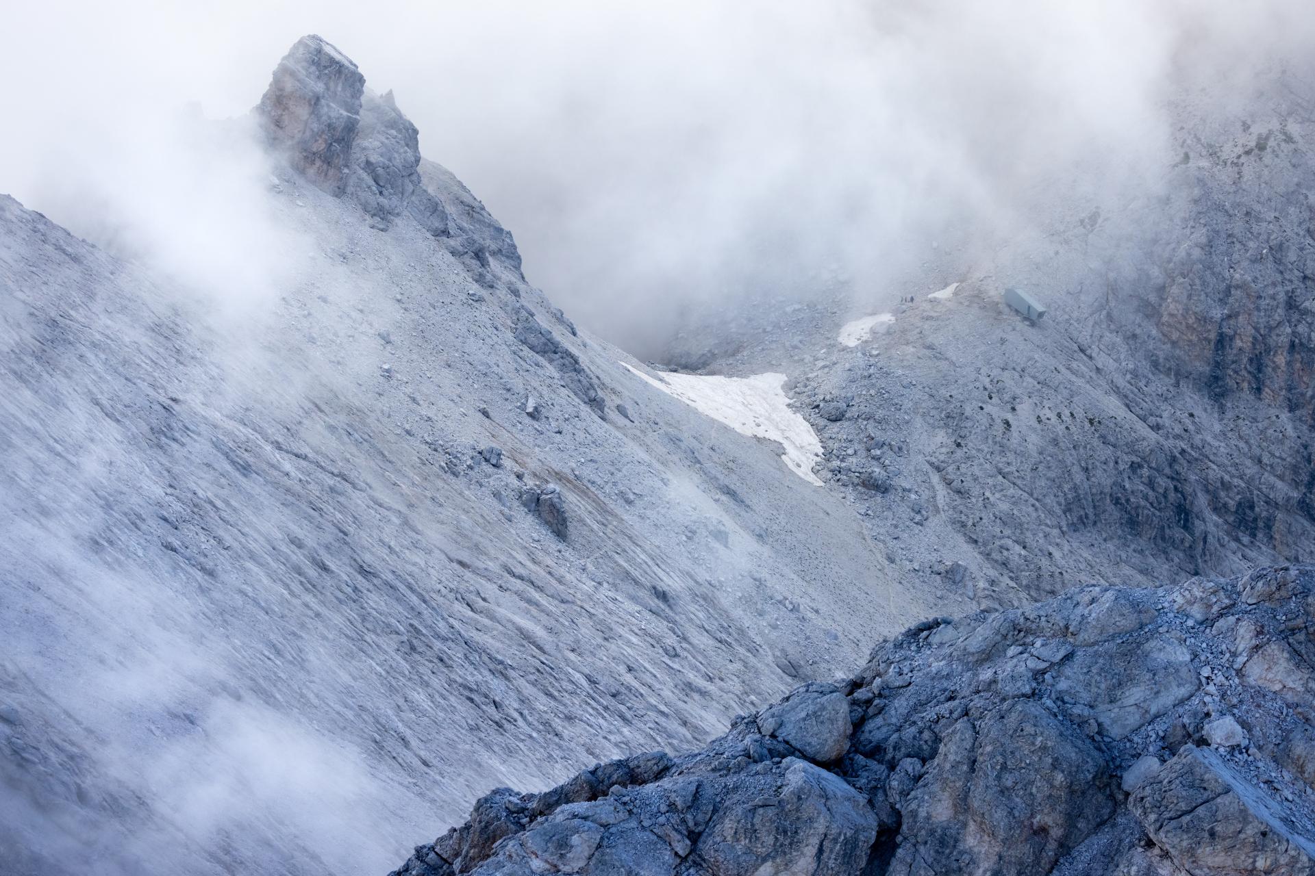 Designing a frontier architecture in an extreme territory deprived of anthropised references allows to focus the attention on the individual dimension of man and his relationship with the landscape. Here the minute spatiality of the architecture is confronted with the enormous scale of the surrounding context: the aesthetic of the new bivouac arises from the landscape, from the lines of tension in the existing orography, emerging as a volume hewn from nature, suspended above the slope.