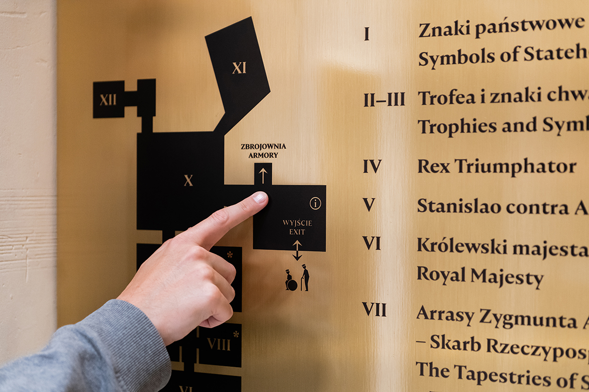 The design is unique for the Royal Castle but the methodology of our work is always the same. We believe that accessible design is good design. In designing, we focus on creative and functional solutions. We want visitors to feel good in the spaces we design and that the space is accessible to various recipients. It is important for us to choose visual means appropriately to the subject.