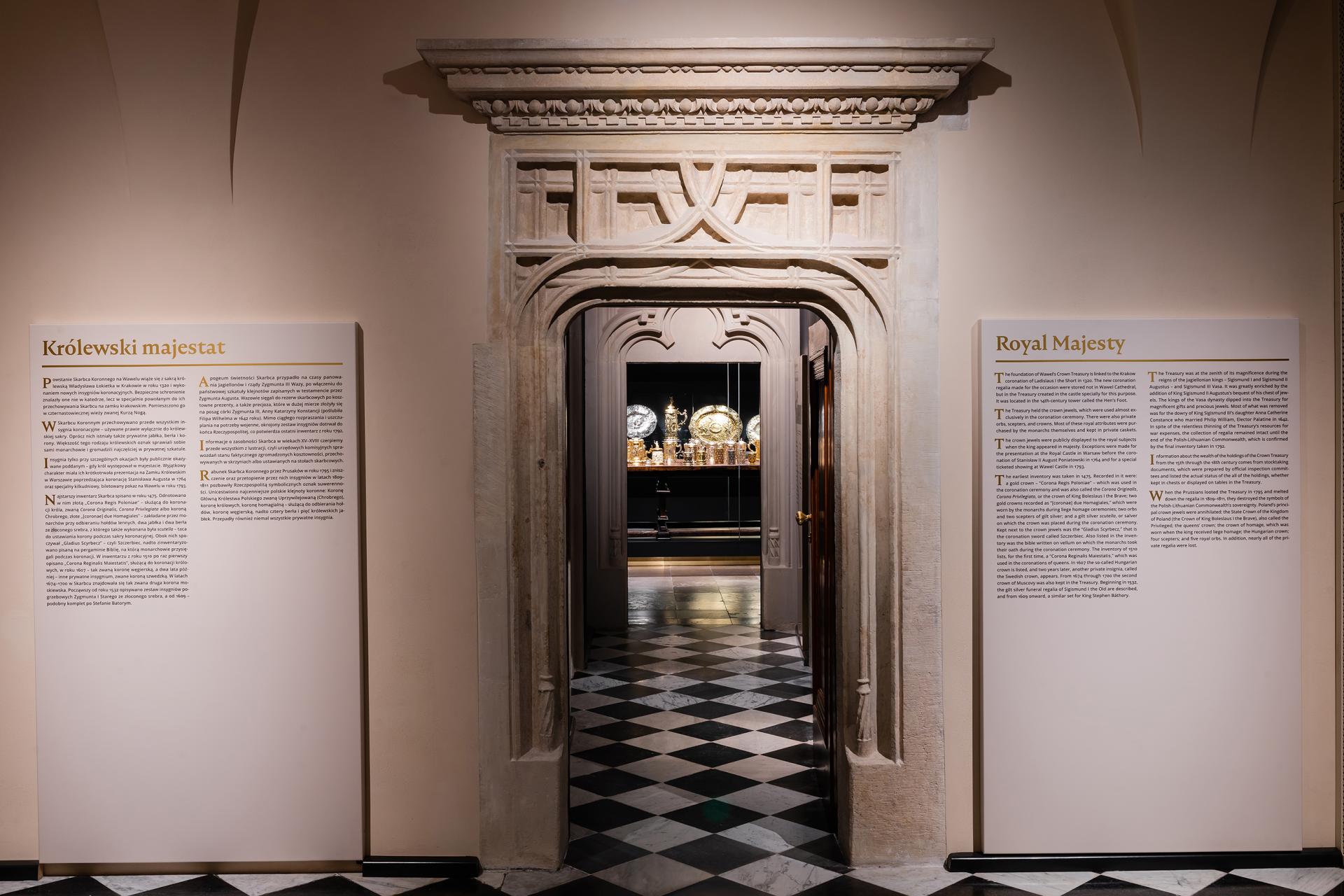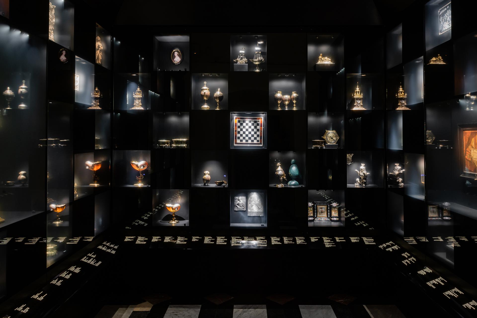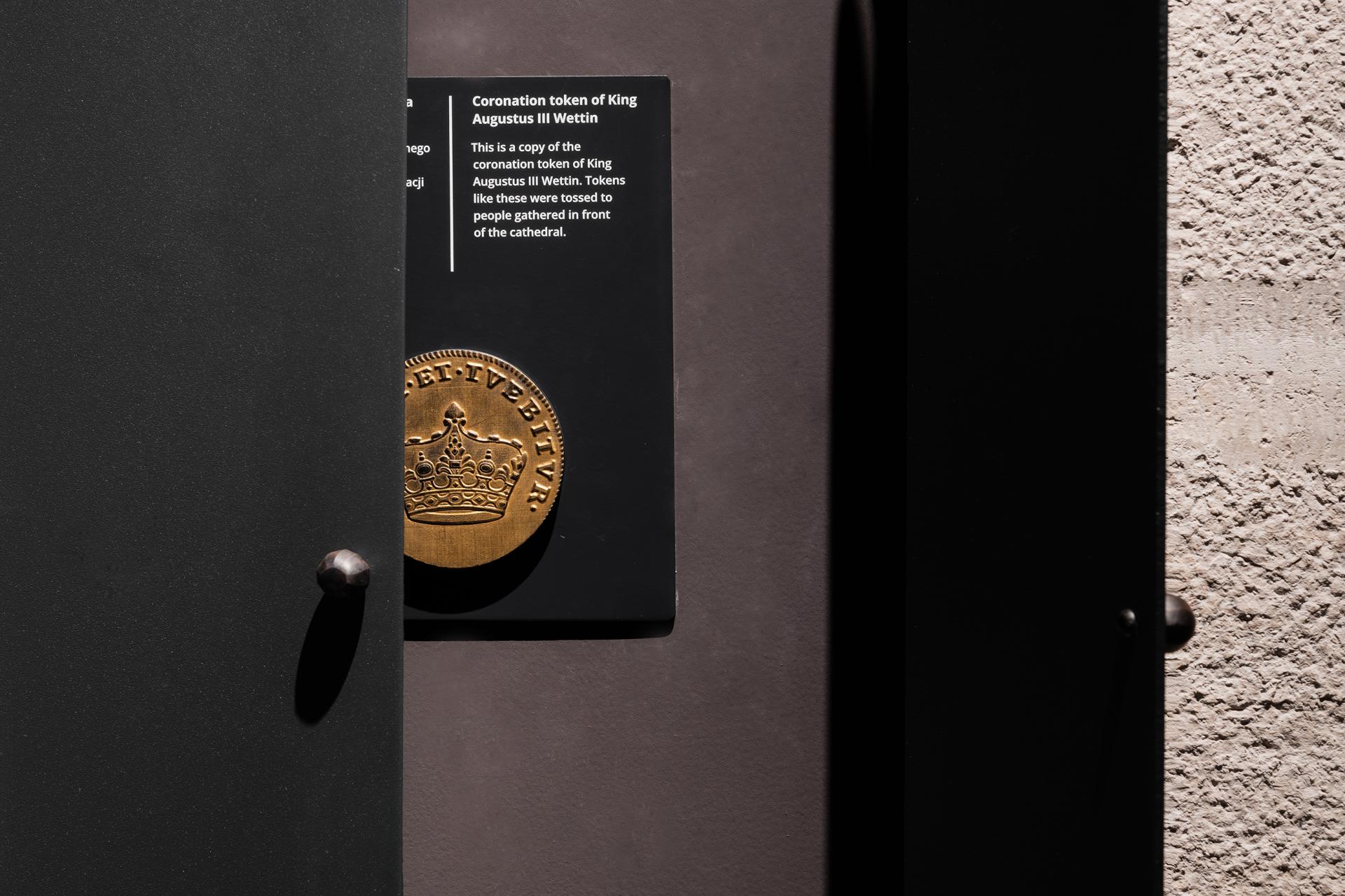 The "New Crown Treasury'' consists of 12 rooms filled with the most important and valuable items in the Royal Wawel Castle's collection. The arrangement of the exhibition is minimalistic and mysterious – it emphasizes the rank and uniqueness of the presented exhibits. The play of light and shadows is not only the crucial visual element of the project, but it is also its main design idea. The arrangement discreetly emphasizes the historic interiors and draws attention.