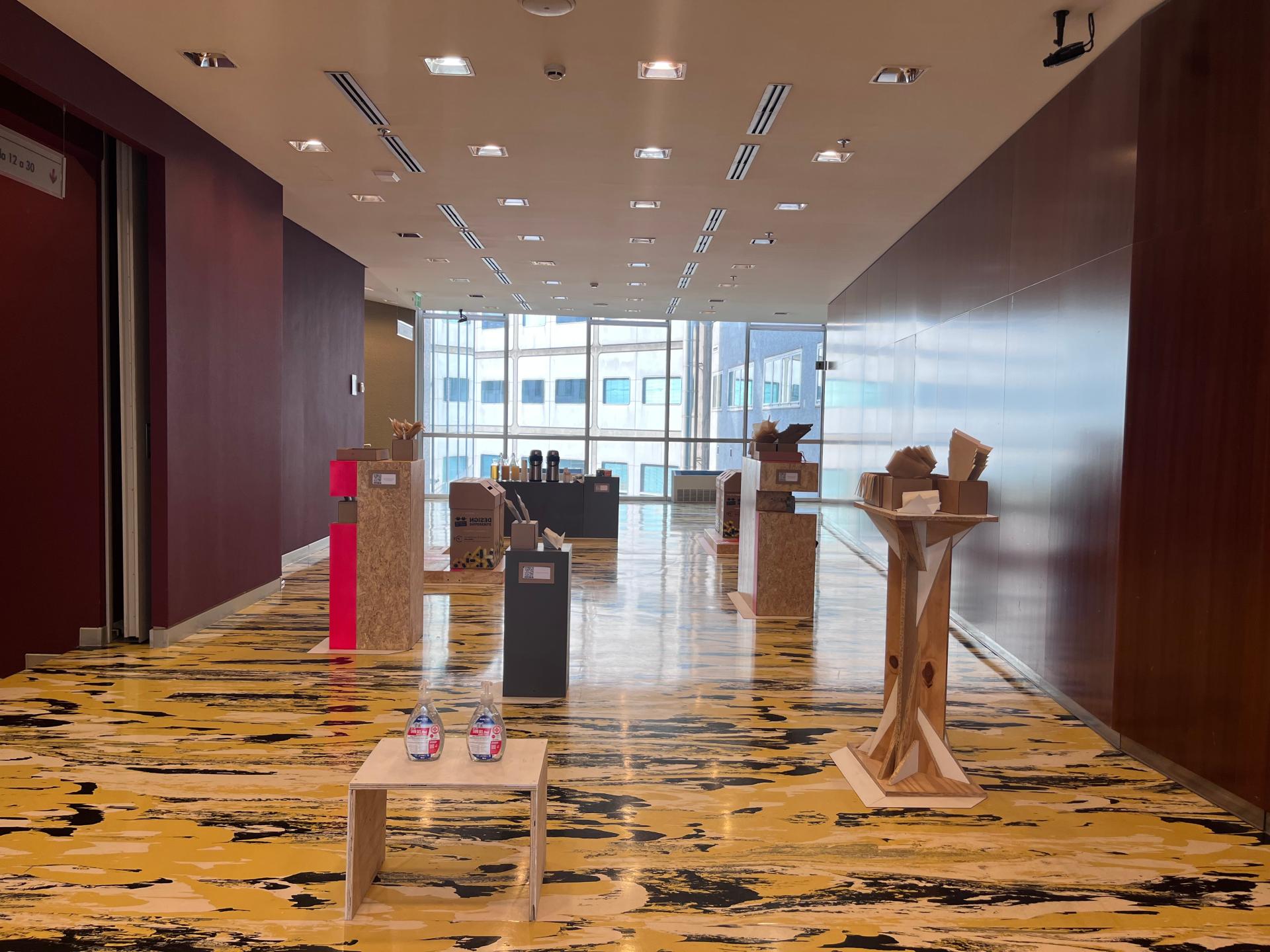 The approach used revolves around the principles of circular economy and repurposes them in the theme of exhibit design: