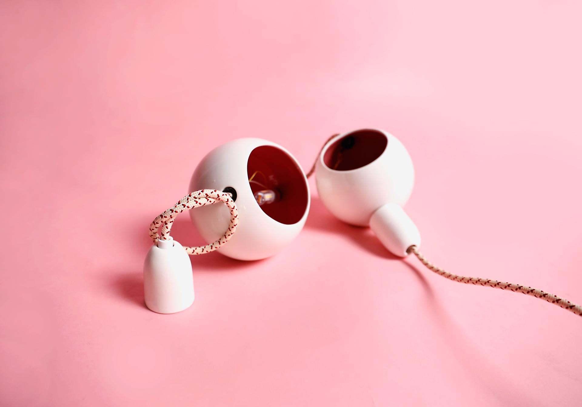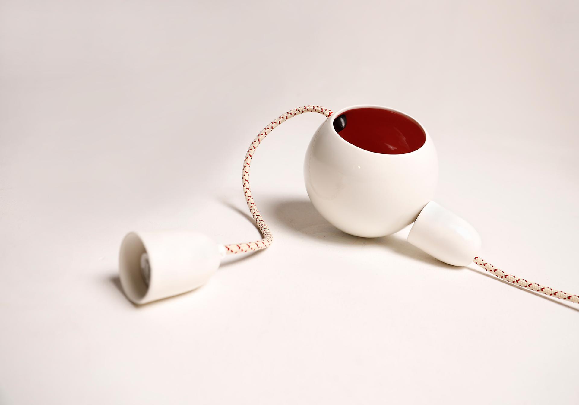 The idea of the Egg lamp came from a wish to design a lamp with an unnoticeable cable. Overtime, the idea transformed into a hanging lamp with a cable that does not have to be hidden, rather celebrated as a visually charming connector of domes.