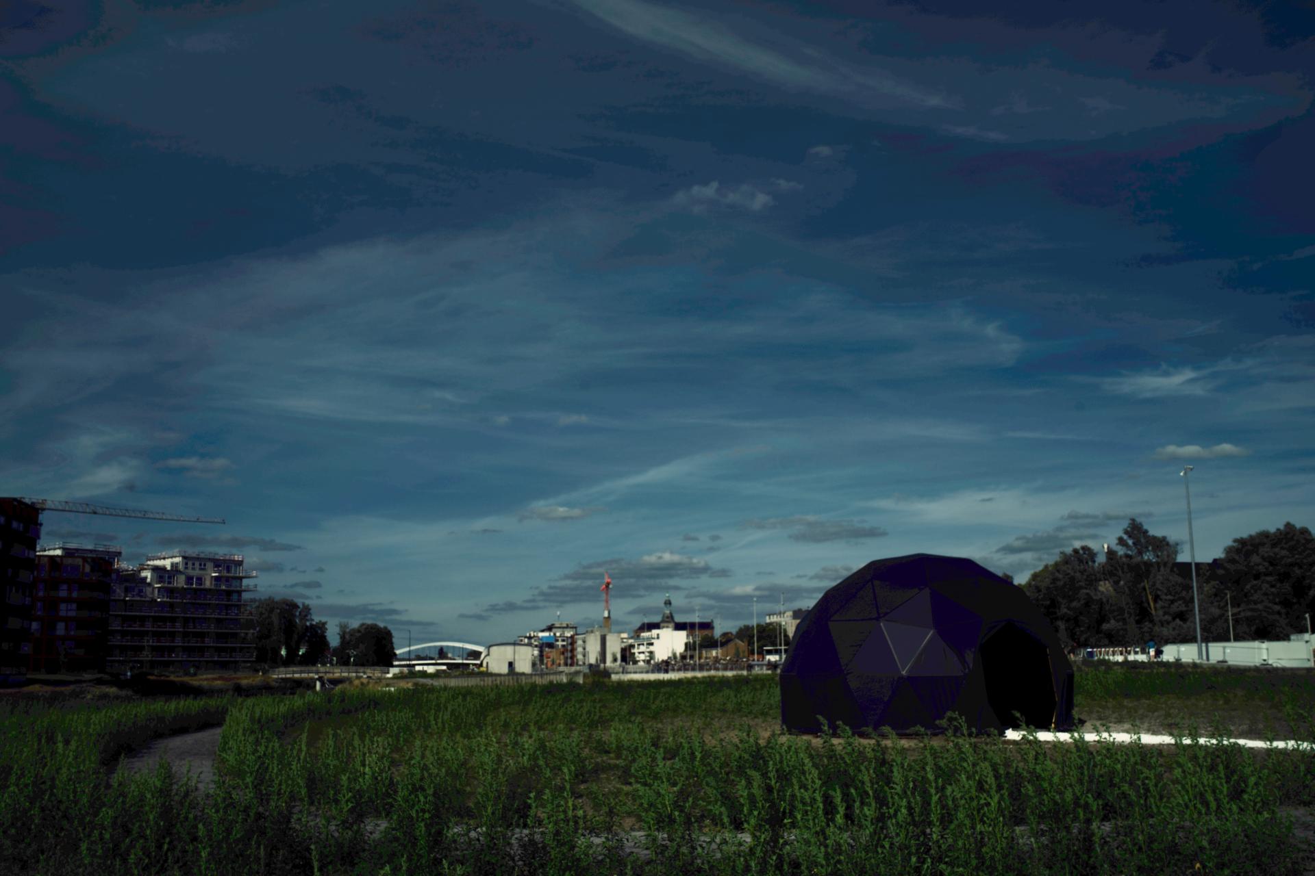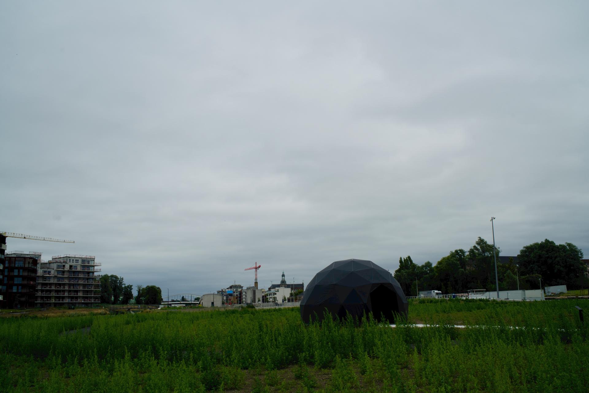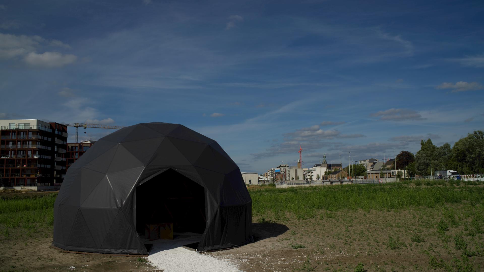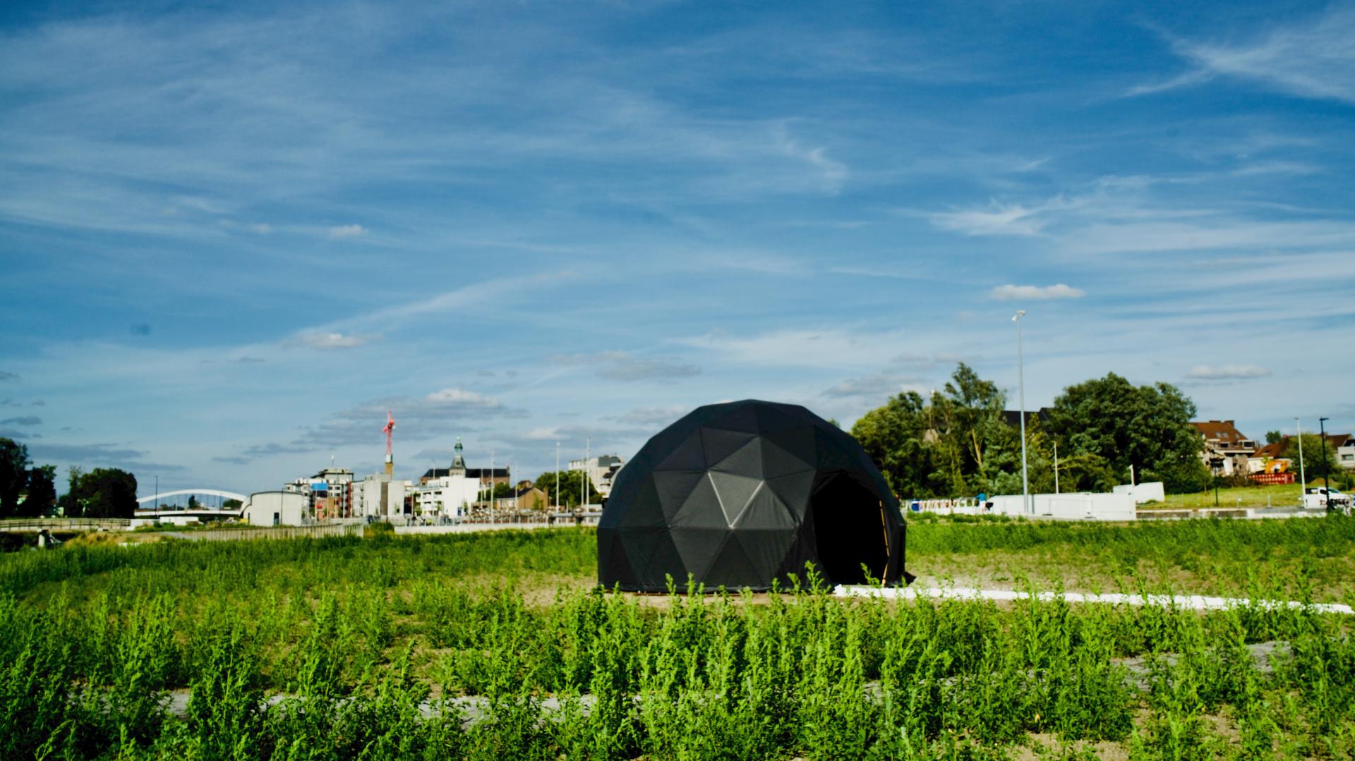 Kevin Trappeniers' minimal installation Observatory is a ‘silent object’ that, as a public shelter, invites the local community, passers-by and visitors to reflect on the precarious relationship between humans and their environment. A geodesic dome in the public space questions a redesigned urban landscape.