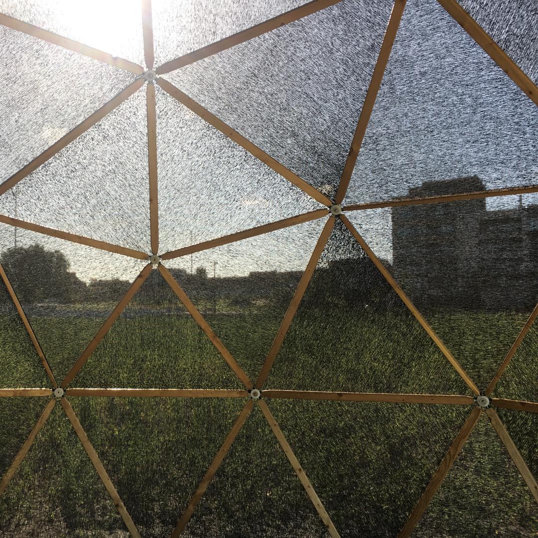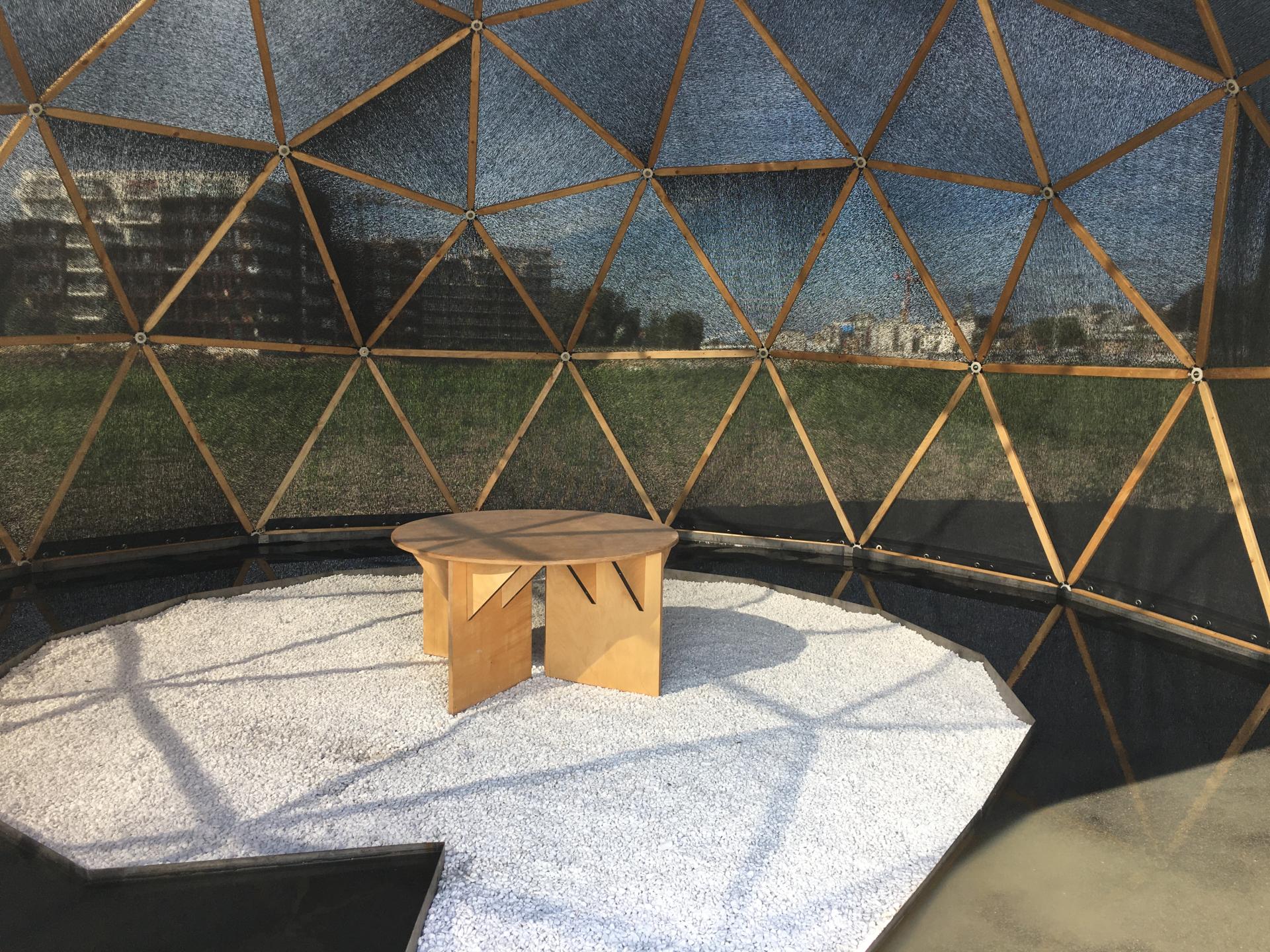 The dome was made primarily out of domestic wood, and for the other materials local and used and/or recyclable materials were used to contribute to circularity.