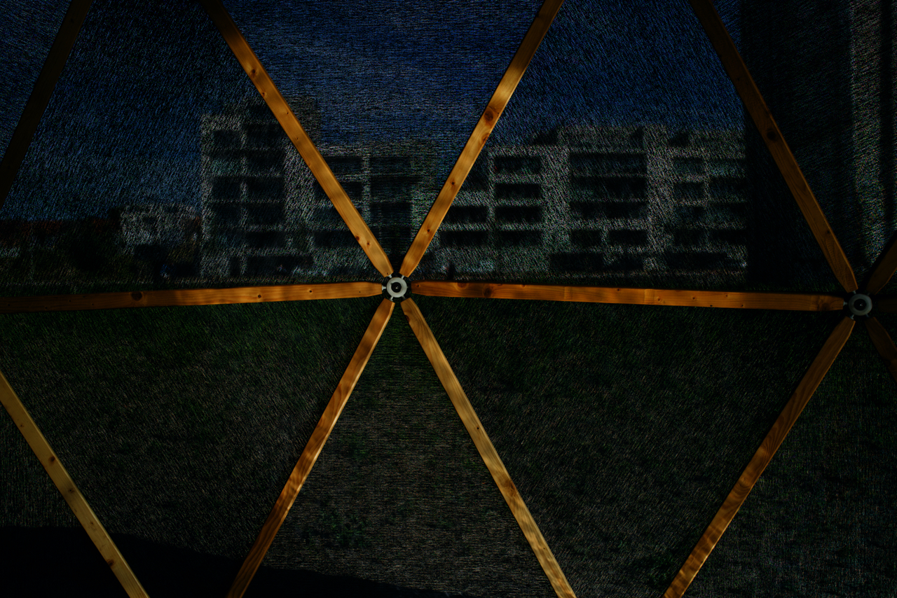 Historically, the dome as a shape is often seen in Christian and Persian architecture, as it would hearten the mystical experience. The geodesic dome, a light yet remarkably strong structure made up of a network of interconnected triangles, was first designed by Walther Bauersfeld as part of a planetarium. Buckminster Fuller popularized the geodesic dome and used it for industrial buildings and exhibition spaces. Nowadays, the structure is easily used as a temporary object during public events and for glamping, and also as a protective structure against the weather for botanical gardens, closed ecosystems, greenhouses and even a future desire for domed cities. Observatory is a play on all of these functionalities.