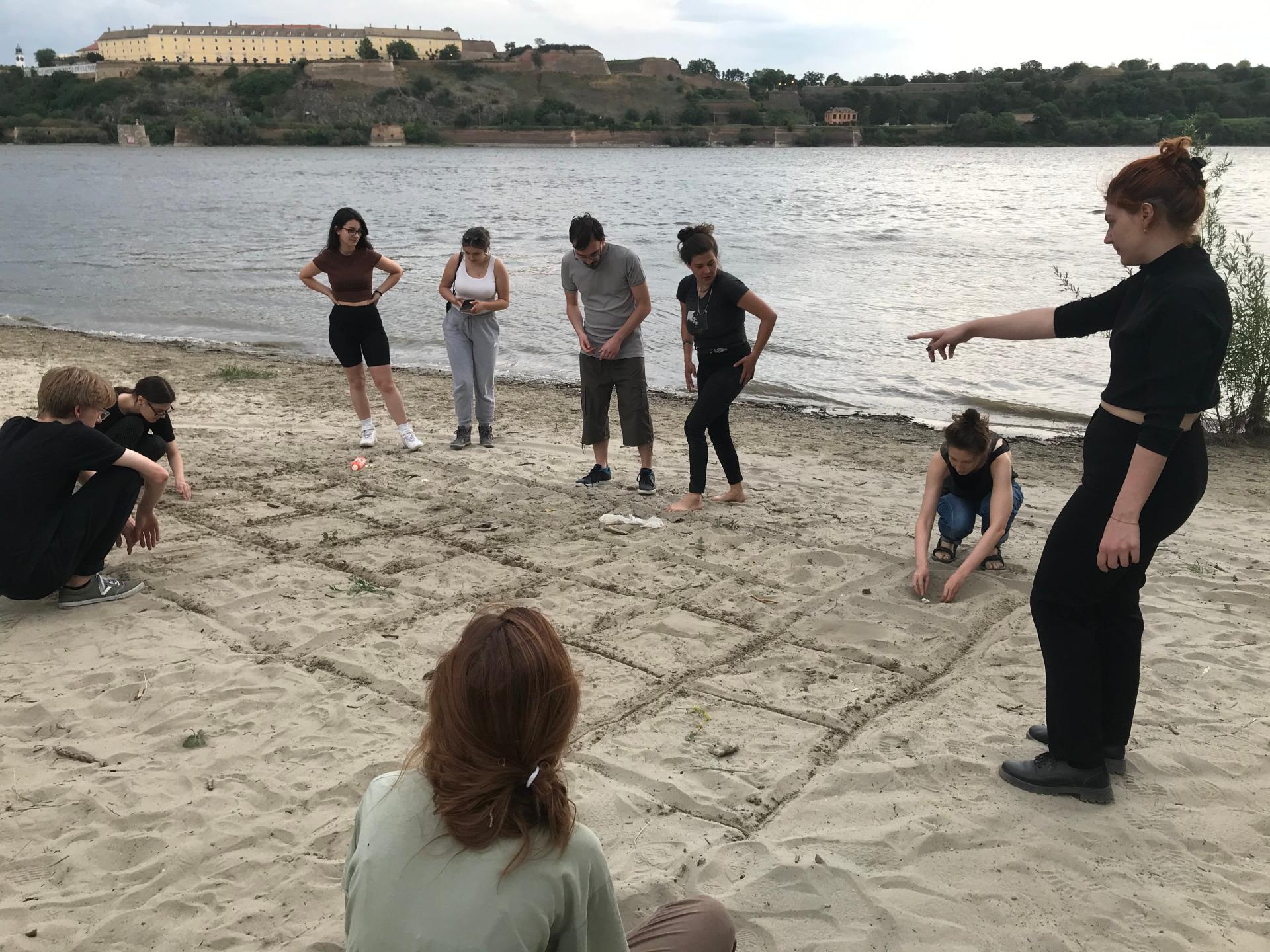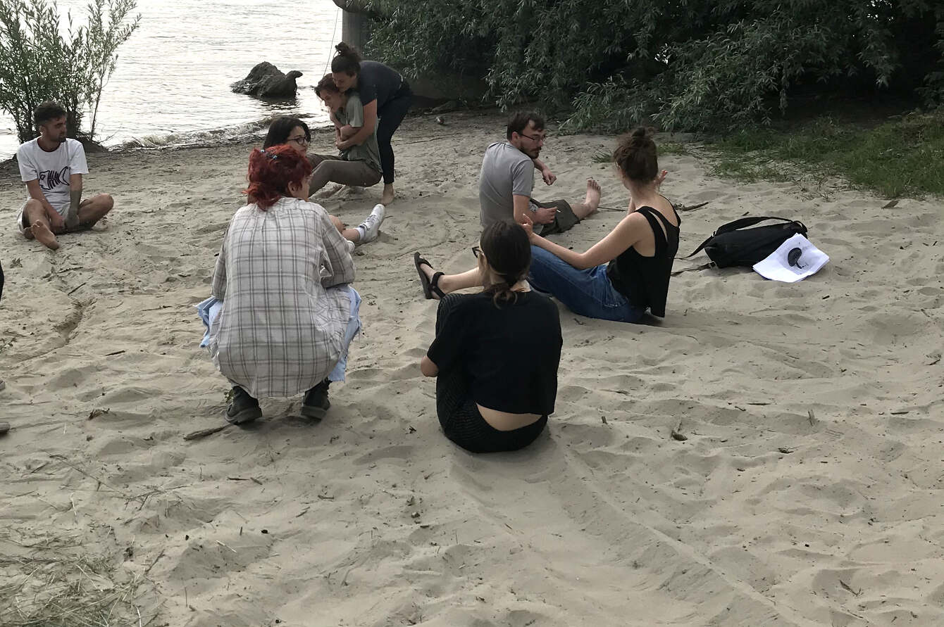 ‘Like a clam, burrow yourself down in the sand using one foot only. Stay there for 2 minutes.’ This is one of the activities delivered by the Office for Para-Pedagogical Activities (PPA) which conjures the image of a mussel burrowing down the sediment, with a strong emphasis on the experiential learning model, where performing, teaching and participating in nature's ‘flux’ are parallel activities. In this act, we engage in a ‘basic research experiment’ by changing personas, and changing perspectives by delivering a performance through enacting a mussel. Being a mussel is only one of the many more-than-human species that we are mimicking through our ‘Fitness for unlikely species’ performance. The exercises are transforming our bodies into a performative choreography by mimicking other entities whose shapes, movements and existence are affected by climate change: ripples, rough waves, high tides and low tides, wrigglers, the dogfish, the fire-bellied toad, or for example, the freshwater mussel by mimicking clams' movement and burrowing behaviour, because understanding how clams' move across space and time can be a fundamental question in Danube’s ecology. The Office for PPA currently provides its services in Novi Sad (Serbia), as a guerrilla pilot-curriculum developed with and for the students of the Academy of Arts (University of Novi Sad). Students are invited to participate in the activities and take part in exercises held at the Office’s headquarters: the Danube. Bound by the core values — Education, Experimentation and Collaboration — the Office for PPA is committed to create an experimental curriculum aimed at transforming art-university lessons with a series of performative events outside the school settings. The Office for PPA is established in order to find alternative ways and strategies on how to engage with the troubled ecological system of the river with arts and education, or more precisely, with the aim to practise attentiveness and empathy.