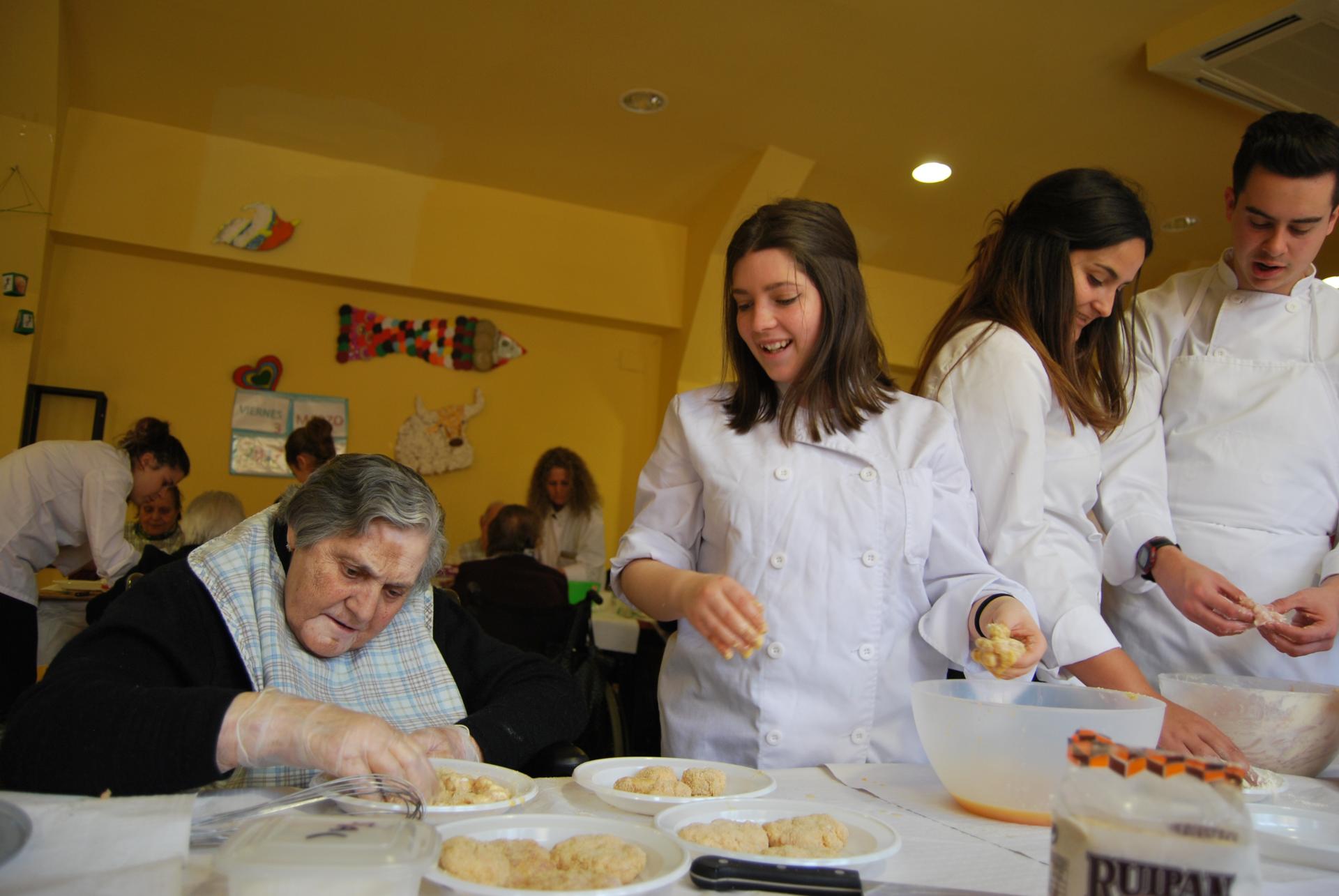 Our purpose was to broaden the typical educational situations of students and make it possible to develop skills and competencies in the scope of relationships, emotions and caring. Some years later (2015) we aimed to transform the highschool in an intergenerational space, by incorporating the elderly to the different classrooms, broadening the possibilities of learning and transforming the methodologies and the highschool spaces. Since then, we have been developing different initiatives with the purpose of incorporating new spaces and opening the school to the community, in particular, the group of older people. As a result, we have developed the Three Generations Programme ( 2-3 years old children, 13-14 years old students and the elderly from the nursing home), the Therapeutic Kitchen Workshop (Vocational Training Cookery students together with the elderly from the nursing home), the work camp in the nursing home (secondary students who spend one week at the nursing home during summer time in order to work with the workers of the place), Operación Soledad (secondary students who volunteer to accompany old people who live in solitude in the village) and the Intergenerational Classroom (old people in the high school).