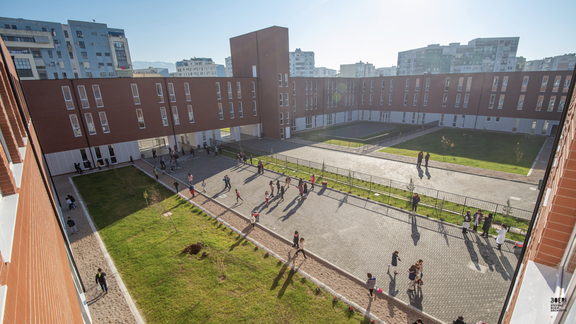 The three school facilities – the first of which was inaugurated in December 2021 – in the neighbourhoods of Don Bosko, Kodër-Kamëz, and Shqiponja, located in the north-western quadrant of the city and designed to accommodate pupils in educational cycles that incorporate kindergarten, elementary, middle, and high school, were created.