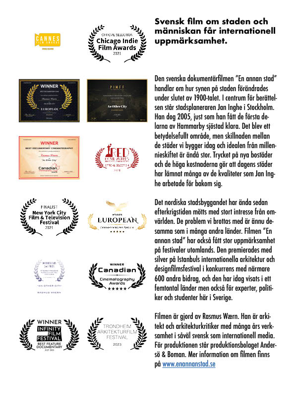 The film "An Other City" aims to tell the story about the most successful and most influential urban development when it came to sustainability that have been made. Hammarby Sjöstad in Stockholm was a trailblazer in terms of circular models for waste and energy, and it gave the world an example of how to combine proximity with attractivity.
