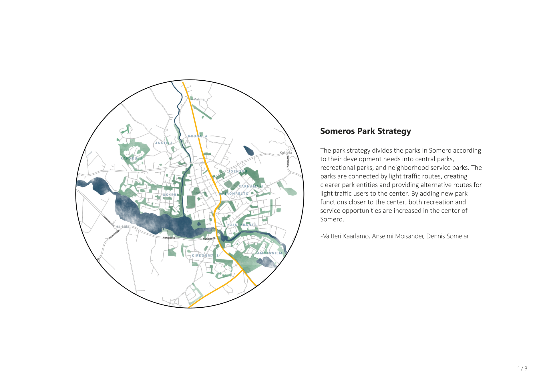The park strategy was designed by three young architects, under the guidance of the officials of the City of Somero, including local politicians, construction industry professionals, and administration experts.