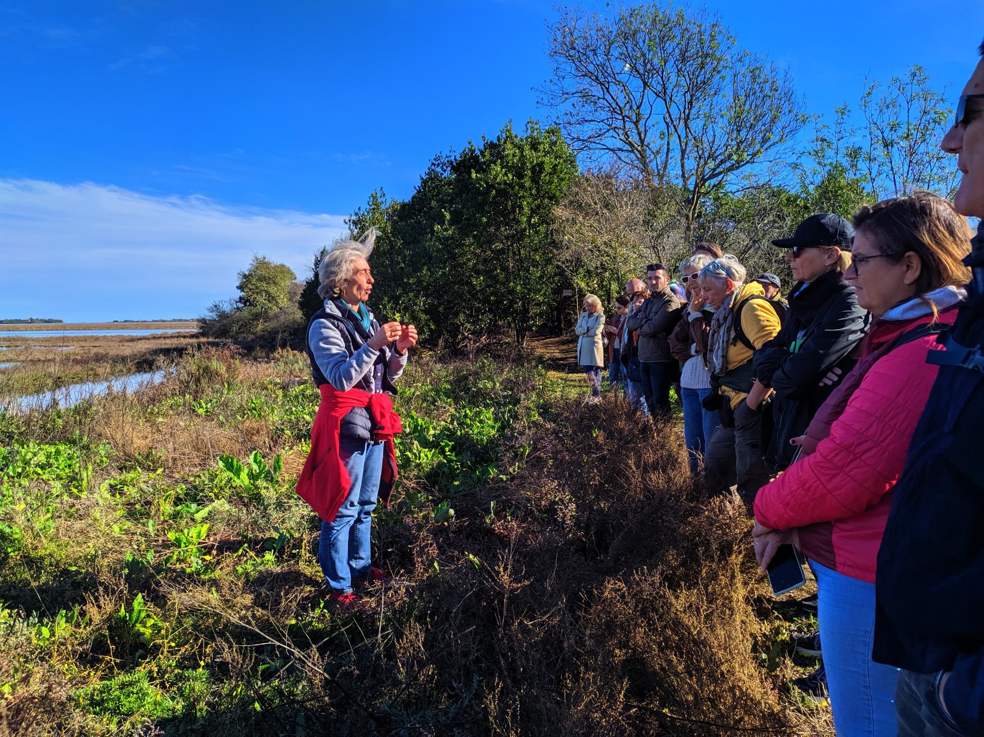 The Path unveils many aspects of sustainability. Several ecosystem services in the lagoon depend on the Barene: high waters and flooding regulation, biodiversity conservation (nesting and feeding of birds, nursery for marine species, unique habitat for insects and marine microfauna), and resilience to climate change (SDGs 13,14,15). The project is also relevant for economic sustainability as it offers an alternative to mass tourism (SDGs 8,12). In this way, it also offers a more sustainable, slow-paced, and proximity tourism which contributes to developing place-based knowledge and curiosity in the variegated groups of visitors, thus resulting in high-quality education, especially outdoor education and life-long learning (SDGs 4, 10, 11). In this area, motor boats are not allowed to preserve the fragile balance of Barene ecosystem. Moreover, the ecomuseum hosts one of the first Italian plant-based wastewater treatment systems. This pilot project for the Venice lagoon was unveiled in Hanover, at Expo 2000. It is based on planting herbs that break down the pollutants contained in wastewater, which is treated before its release into the lagoon (SDGs 9, 11, 12). This system is just an example of alternative and nature-based solutions that can contribute to a more sustainable future. After the discovery of the rare Pinna nobilis around the Island, environmental quality indicator and largest bivalve in the Mediterranean, the ecomuseum joined the CNR-ISMAR project “Mappa la Pinna” inviting all lagoon visitors to report any sighting. The Barene along the Path are involved in monitoring by CO.RI.LA to study the impacts of climate change and MOSE system on the ecosystem.
