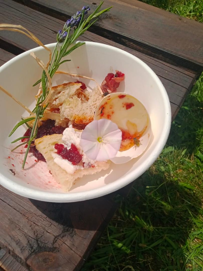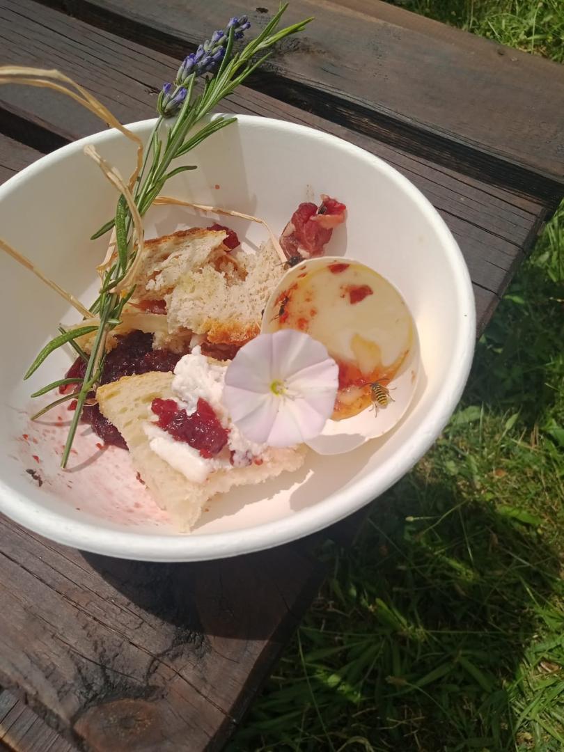 Picnics were organised in farmers’ fields during the spring/summer. Participants were prompted to prepare their own picnic food and, following a food guide suggested by the entomologist, compiled and cooked a more-than-human menu. The entomologist attended the picnic, explaining the behaviours of the insects visiting the food, helping to distinguish them, and explaining how to co-inhabit the picnic zone.